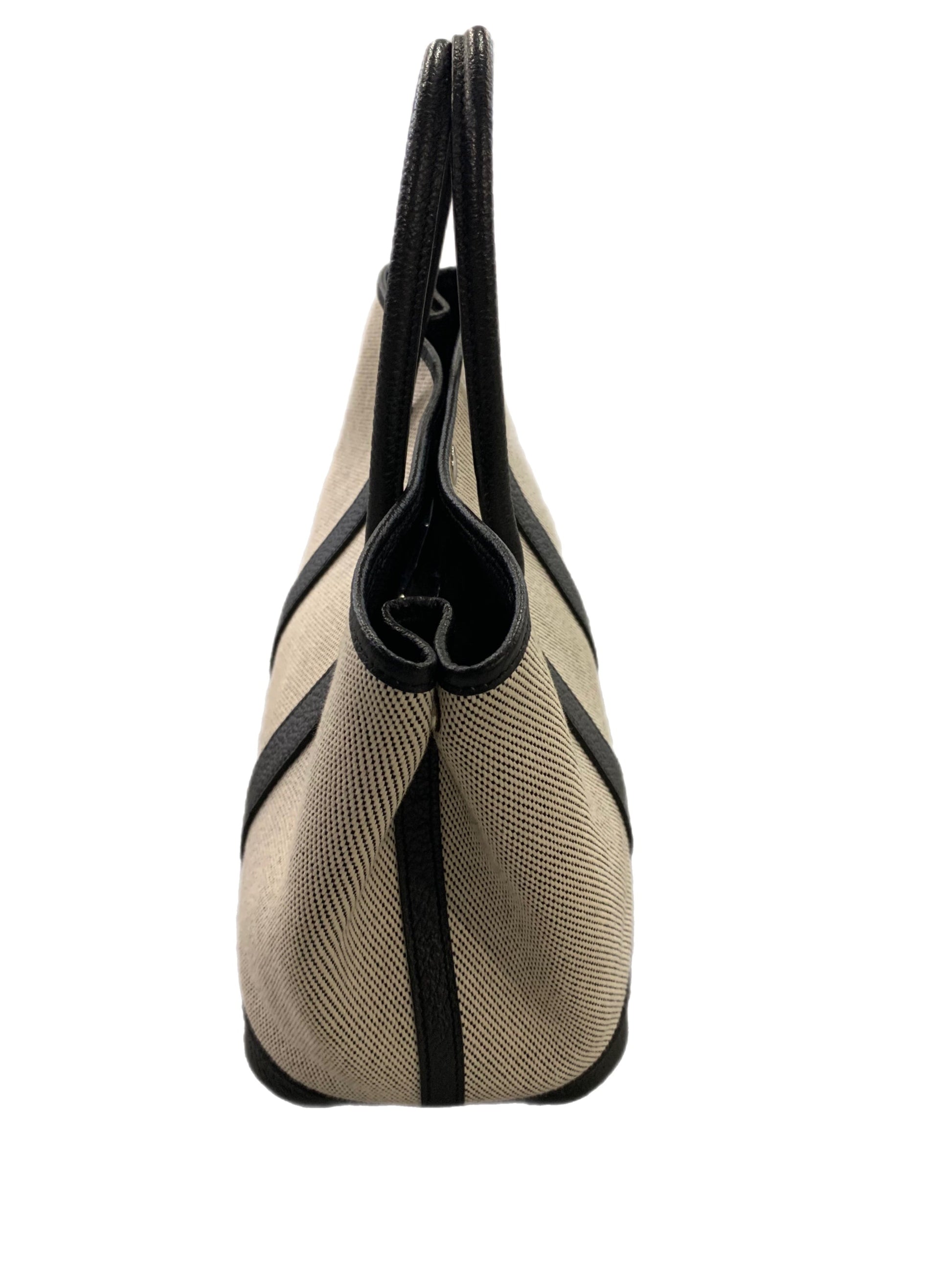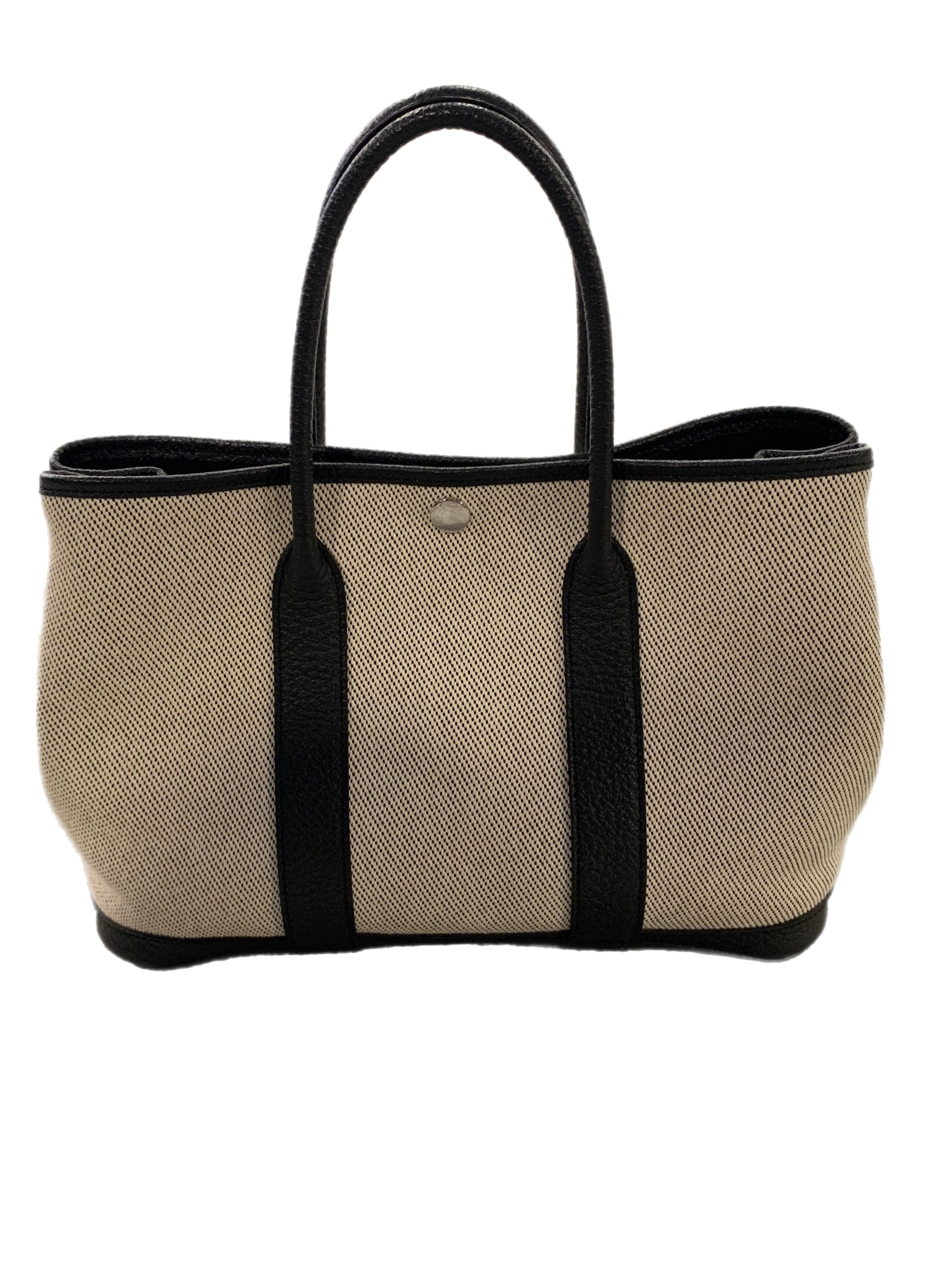 Details: This sophisticated tote is crafted of luxurious beige canvas with black leather accents. The bag features expandable sides with a snap, trim that transitions into rolled leather top handles, and a top snap in palladium silver that opens to a spacious black leather interior. 12”x8.5” Condition: Like New. Product Features: Exquisite Craftsmanship: The Hermès Garden Party TPM showcases unparalleled craftsmanship, combining expert artistry and premium materials to deliver an accessory of utmost refinement. Iconic Hermès Design: Adorned with the prestigious Hermès logo, this bag is a symbol of timeless elegance and exclusivity, making it a coveted possession for fashion enthusiasts. Luxurious Leather: Crafted from the finest calfskin leather, the Garden Party TPM exudes luxury and durability, ensuring it remains an enduring fashion statement. Thoughtful Size: The TPM (Très Petit Modèle) size offers just the right amount of space for your essentials, providing convenience without compromising on elegance. Versatile Style: Whether paired with casual jeans or a sophisticated dress, the Garden Party TPM seamlessly complements any outfit, making it suitable for various occasions. Secure Closure: The bag features a top snap closure, ensuring your belongings are kept safe and secure while maintaining a chic appearance. Comfortable Handles: Designed with comfortable rolled leather handles, the Garden Party TPM allows for easy and stylish carrying. Product Benefits: Timeless Elegance: The Hermès Garden Party TPM adds a touch of timeless elegance to your overall look, elevating your style to new heights. Effortless Versatility: Its versatile design ensures you can confidently carry the Garden Party TPM for any occasion, be it a formal event or a casual outing. Lasting Luxury: Crafted from premium materials, this bag's durability ensures it remains a cherished piece for years to come, making it a wise investment in luxury fashion. Attention-Grabbing Appeal: With its iconic Hermès logo and refined aesthetics, the Garden Party TPM makes a statement that turns heads and sparks admiration.