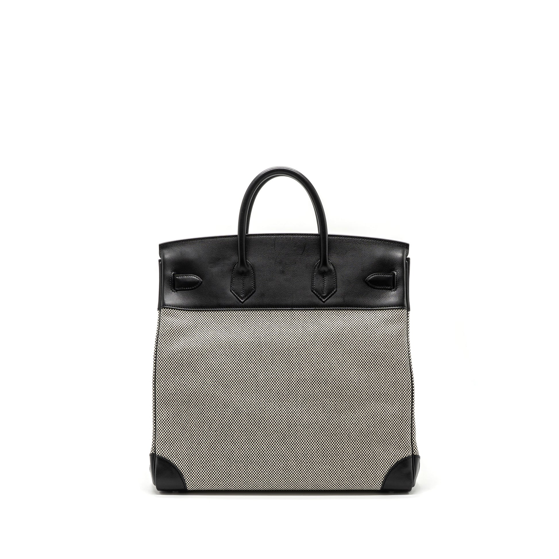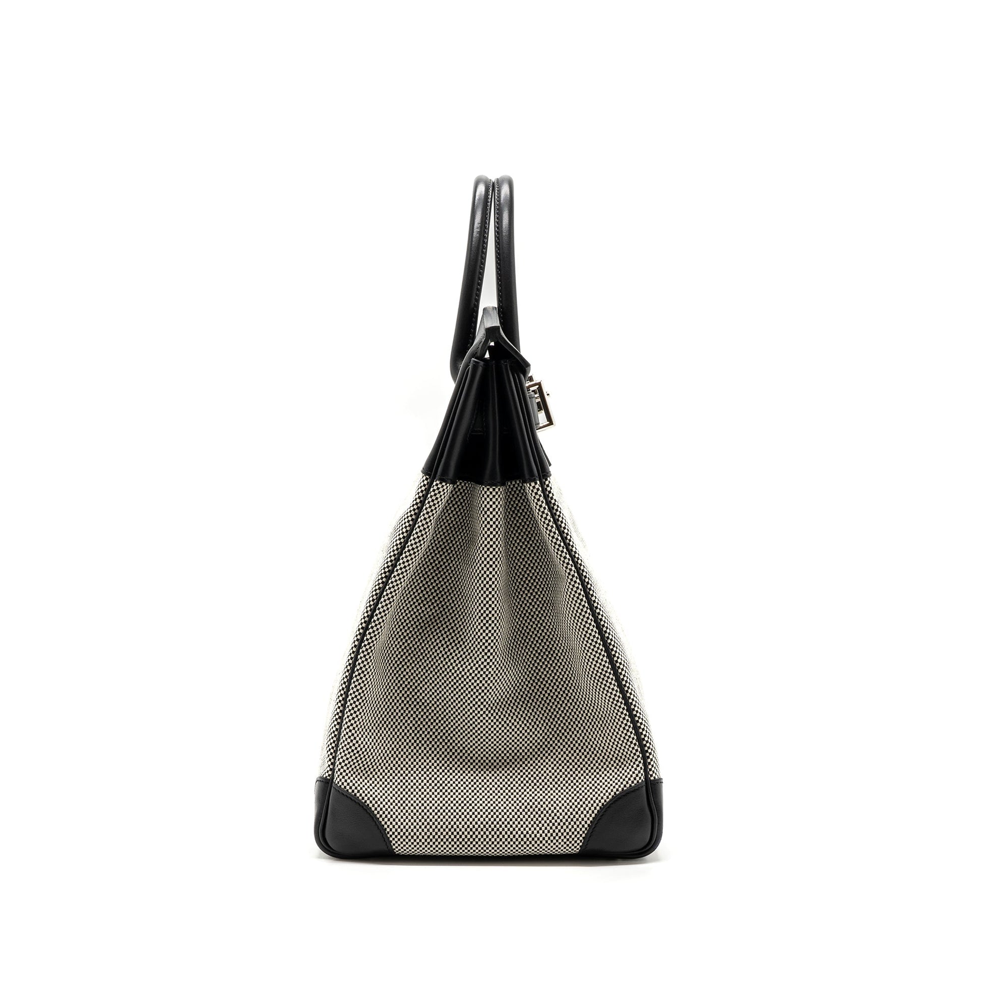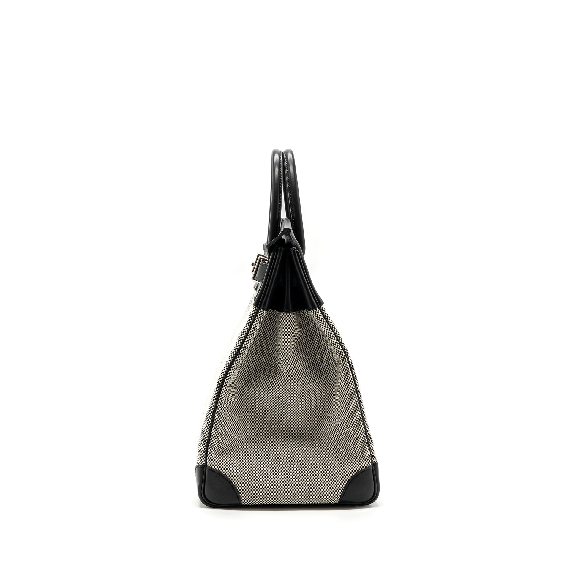 Hermes hac birkin 40 toile Gris canvas / evergrain black/ ecru SHW stamp U