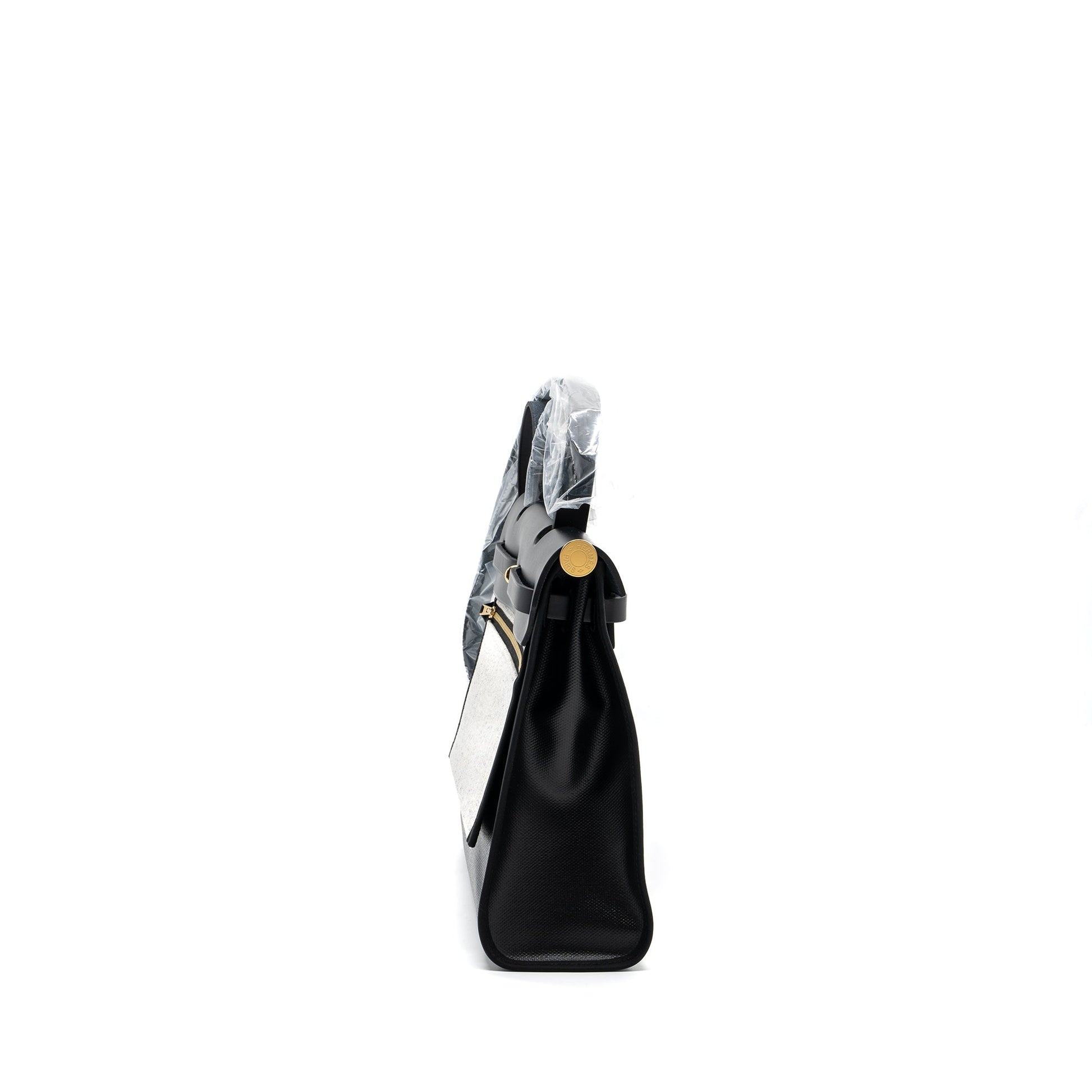 Details: Condition: 10/10 Unused ( This item is in unused and New condition. ) Colour: Black Hardware: Gold Tone Measurement: Length: 31cm Height: 25cm Depth: 12cm Pouch: 23 x 14 x 0.5cm Material : Vache Hunter Leather/Canvas Stamp: B Origin :