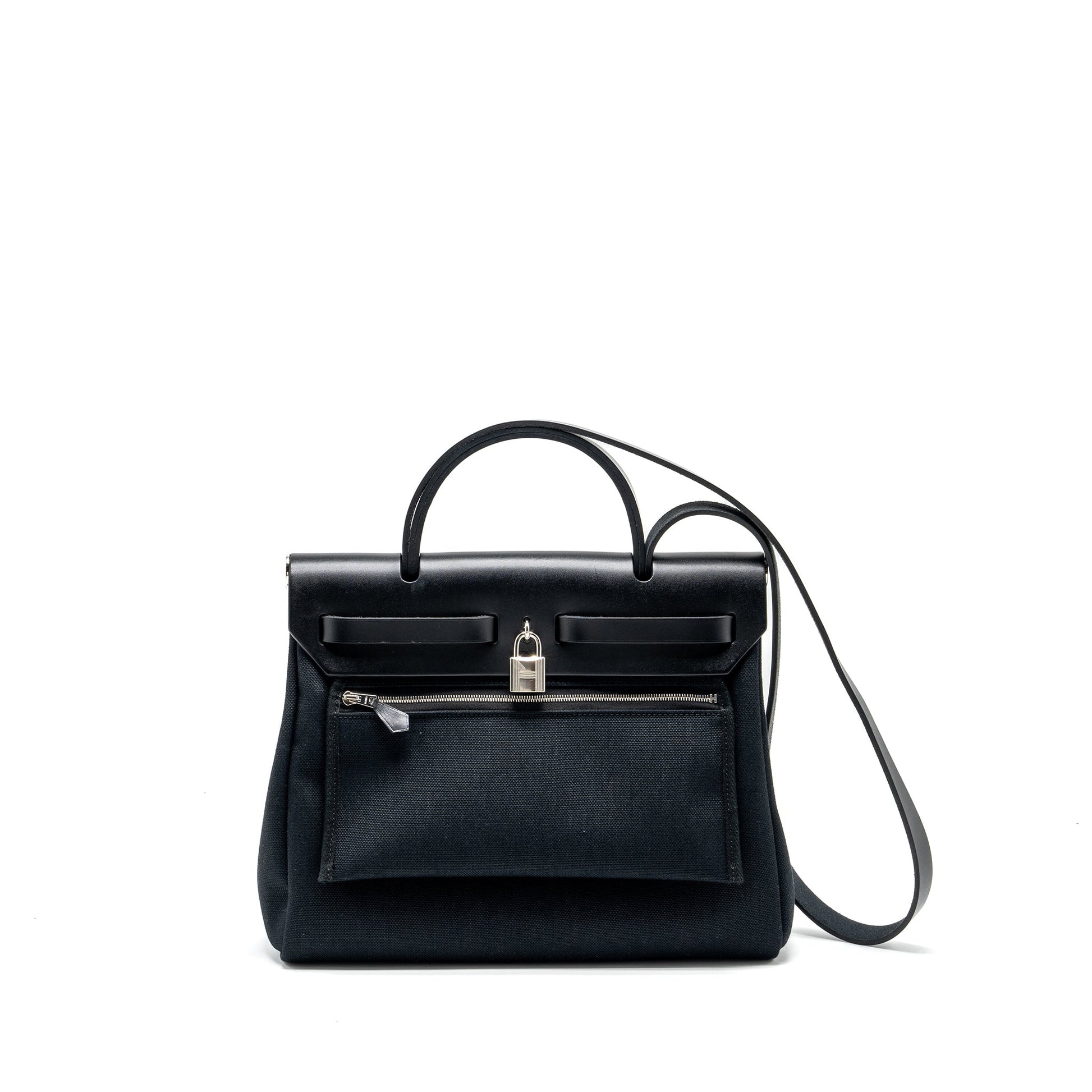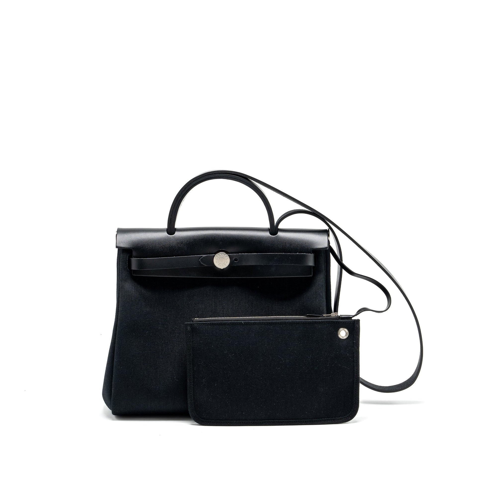 Hermes herbag 31 zip bag canvas / hunter black SHW stamp B