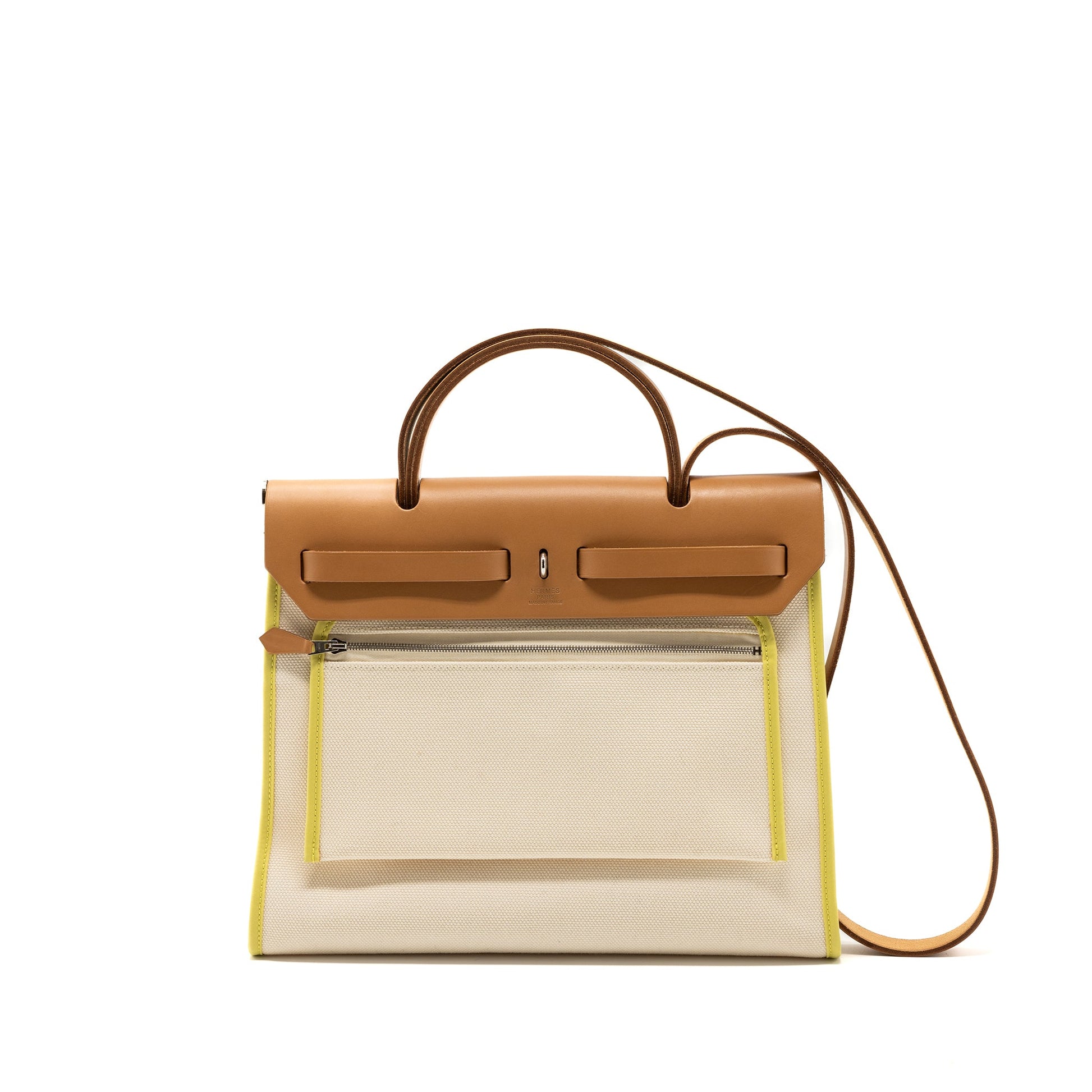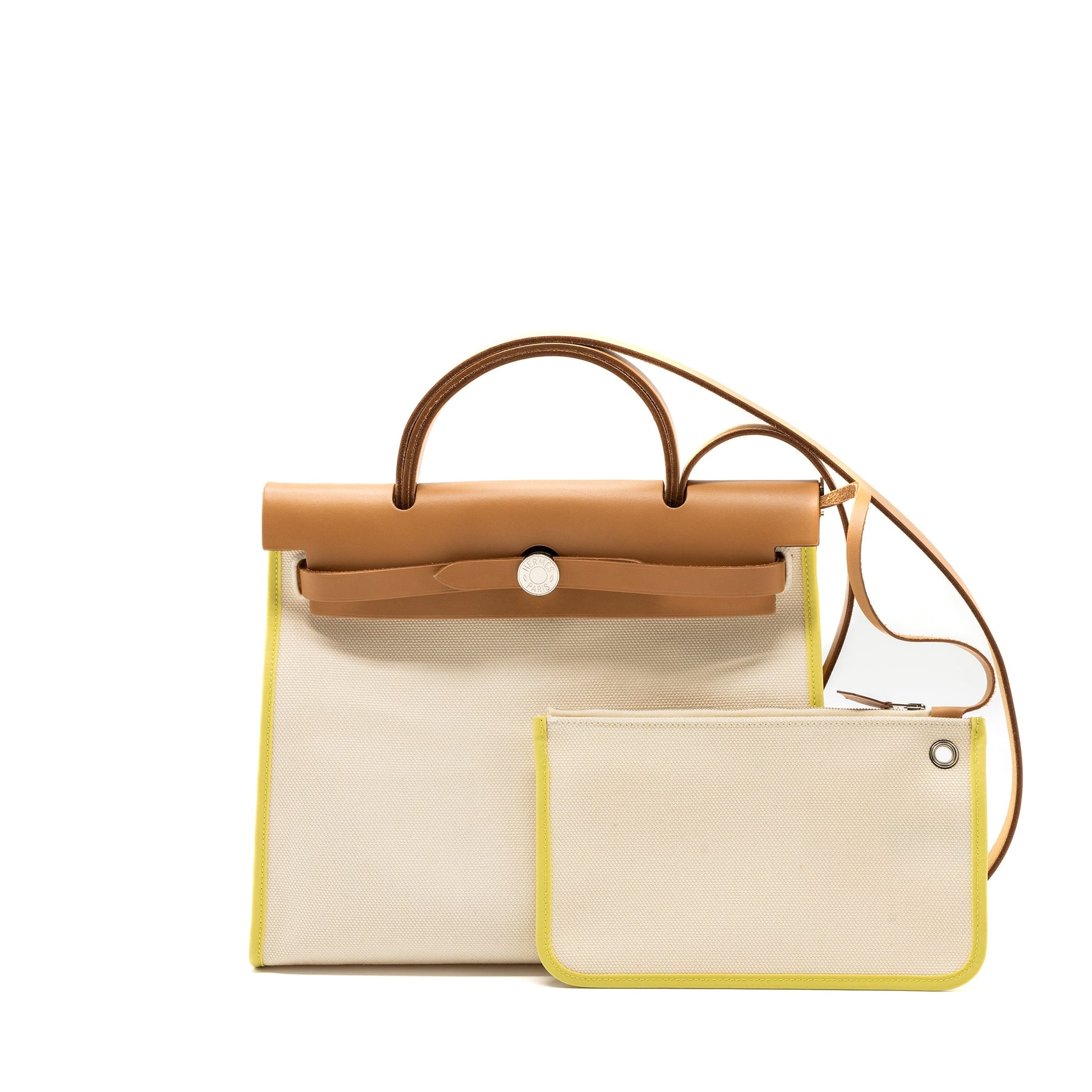 Hermes Herbag 31 Zip Bag Canvas/Hunter Leather Multicolour SHW Stamp Square Q