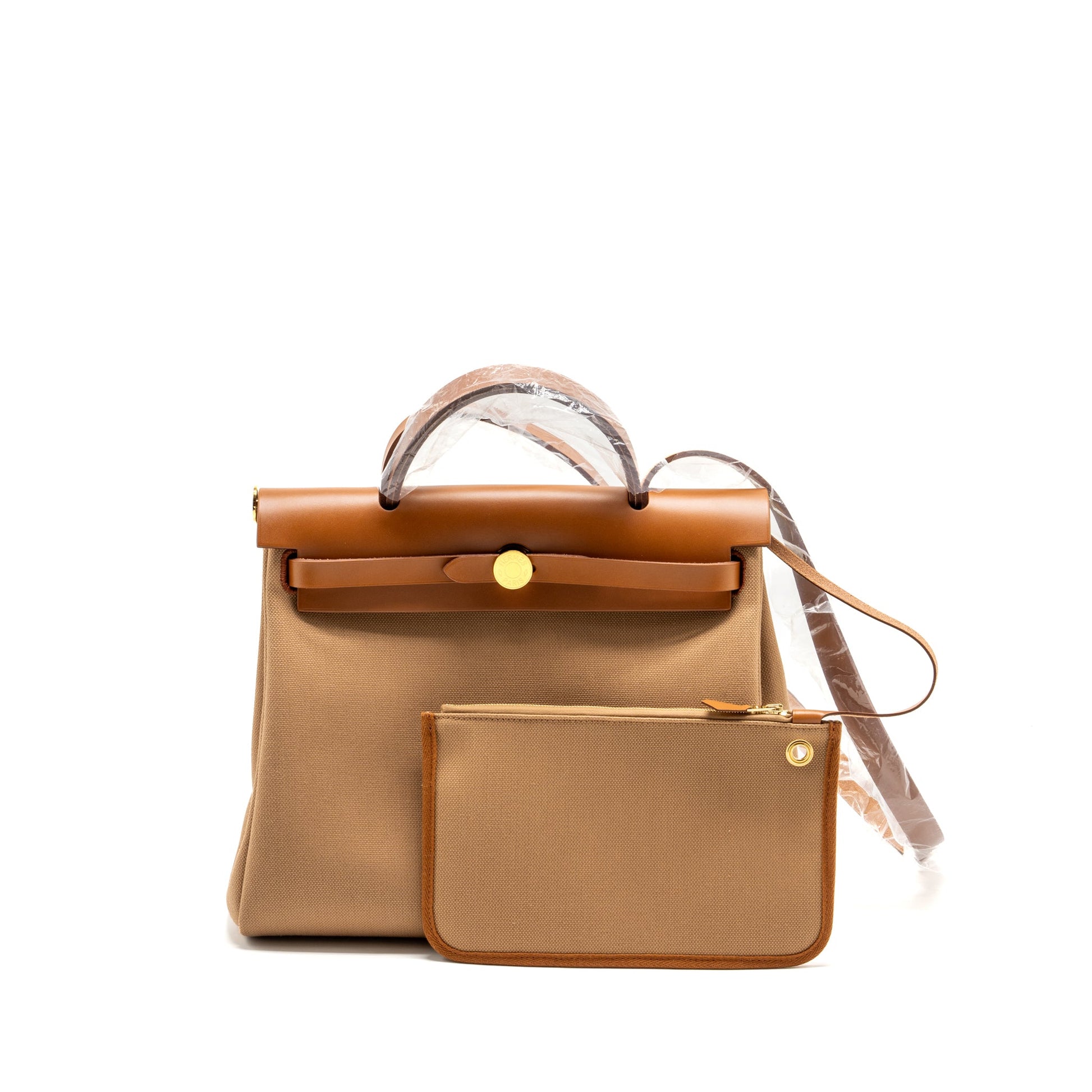 Hermes Herbag 31 zip bag CANVAS/VACHE HUNTER chai / fauve GHW stamp U