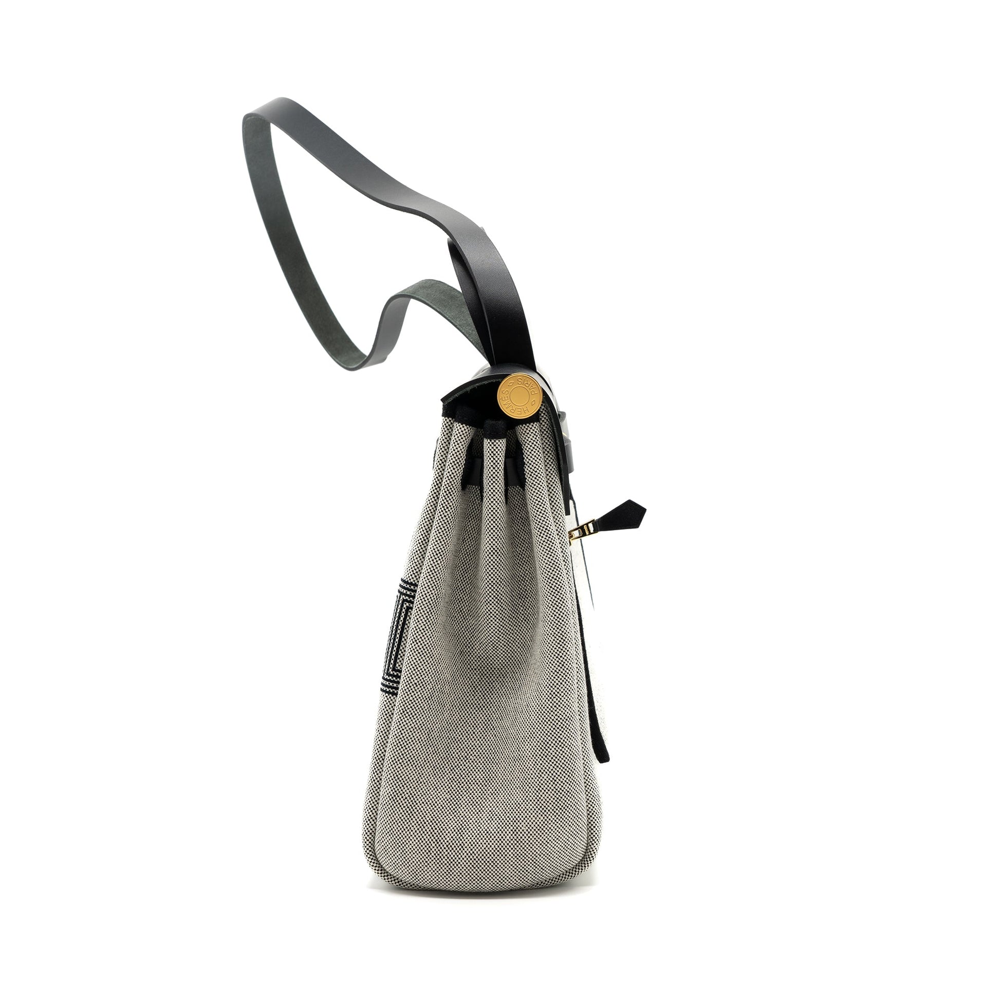 Details: Condition : 9.9/10 New ( This item is in excellent conditionwithout obvious defect.) Colour: Black / Ecru Hardware: Gold Tone Measurement: Length: 31 cm Height: 25 cm Depth: 12 cm Pouch: 23 x 14 x 0.5 cm Material : Hunter Leather / Canvas Stamp: U Origin :