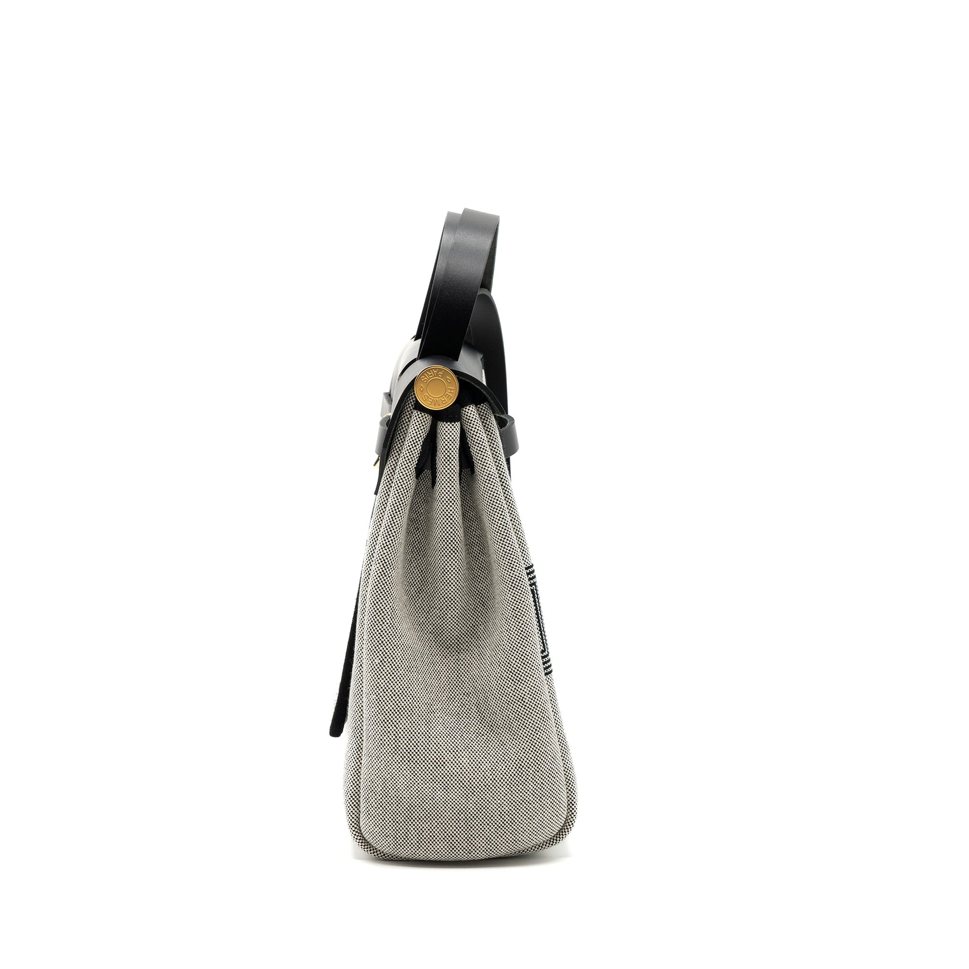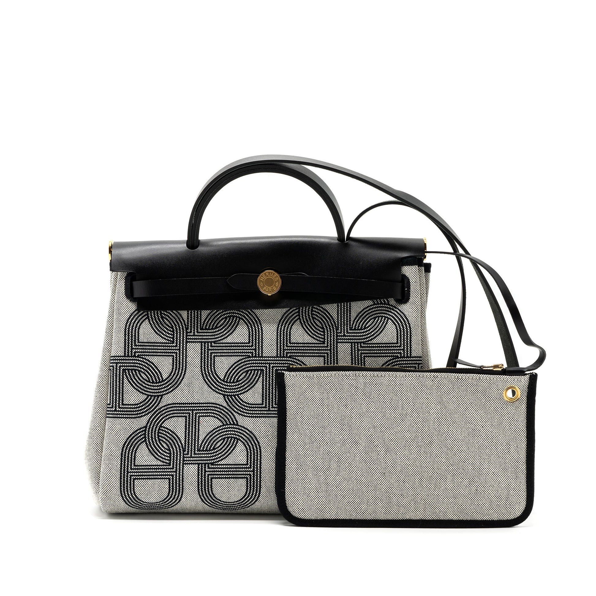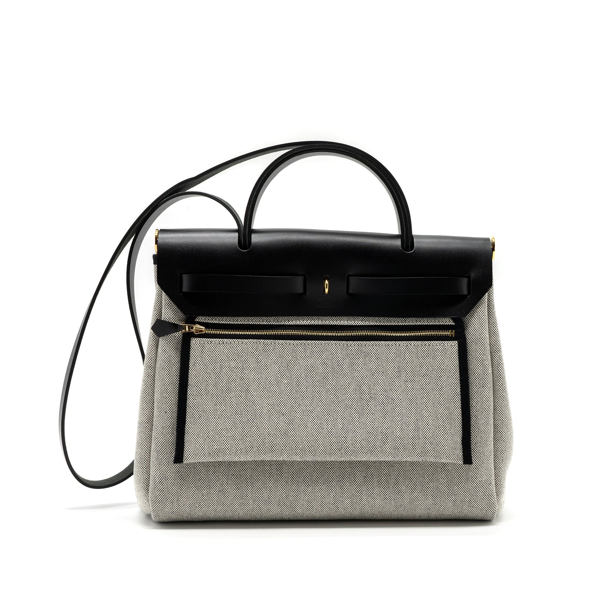 Hermes herbag 31 zip bag toile H plume canvas/ hunter leather black / ecru GHW stamp U