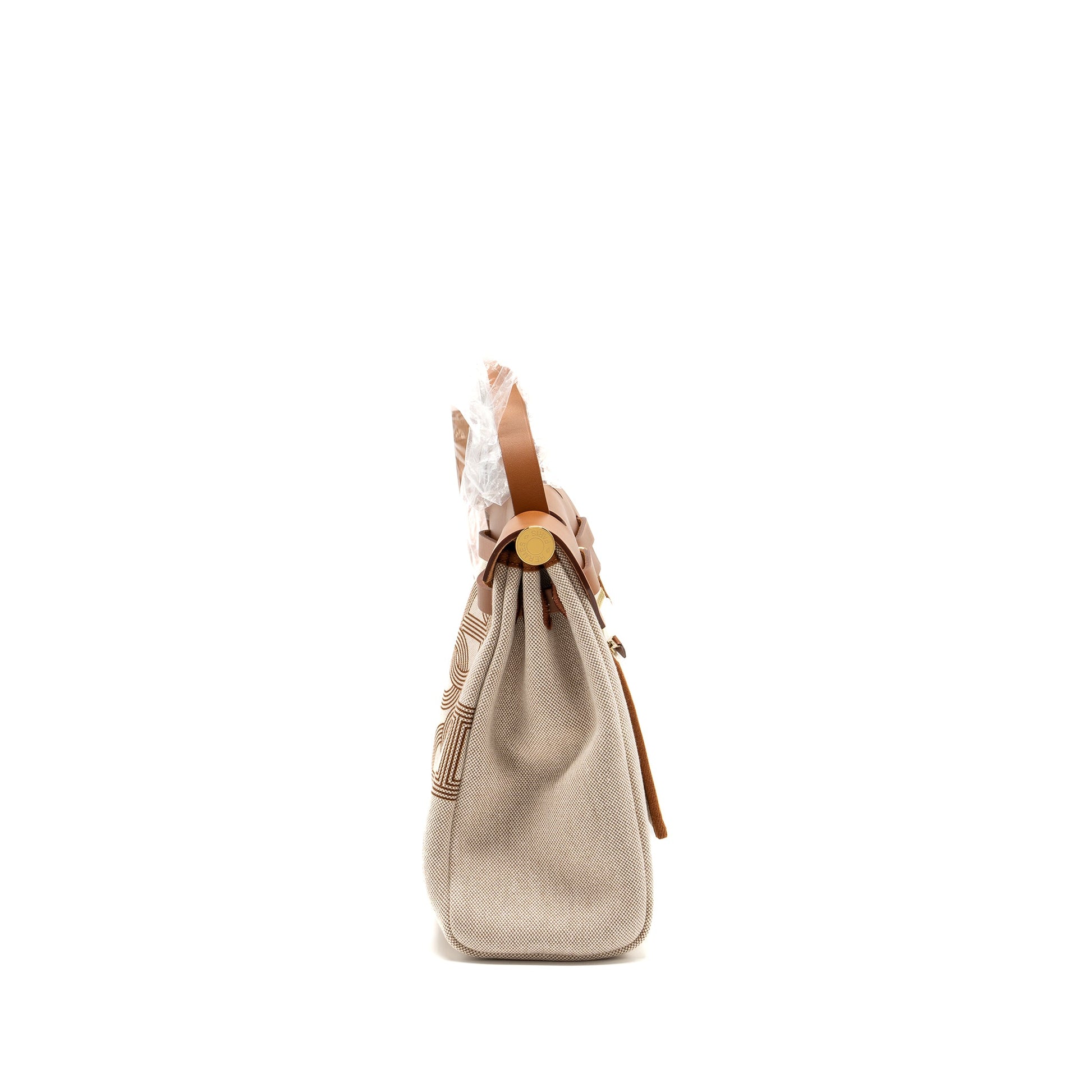 Hermes Herbag 31 zip bag toile H plume canvas / hunter Fauve / ecru- beige GHW stamp B