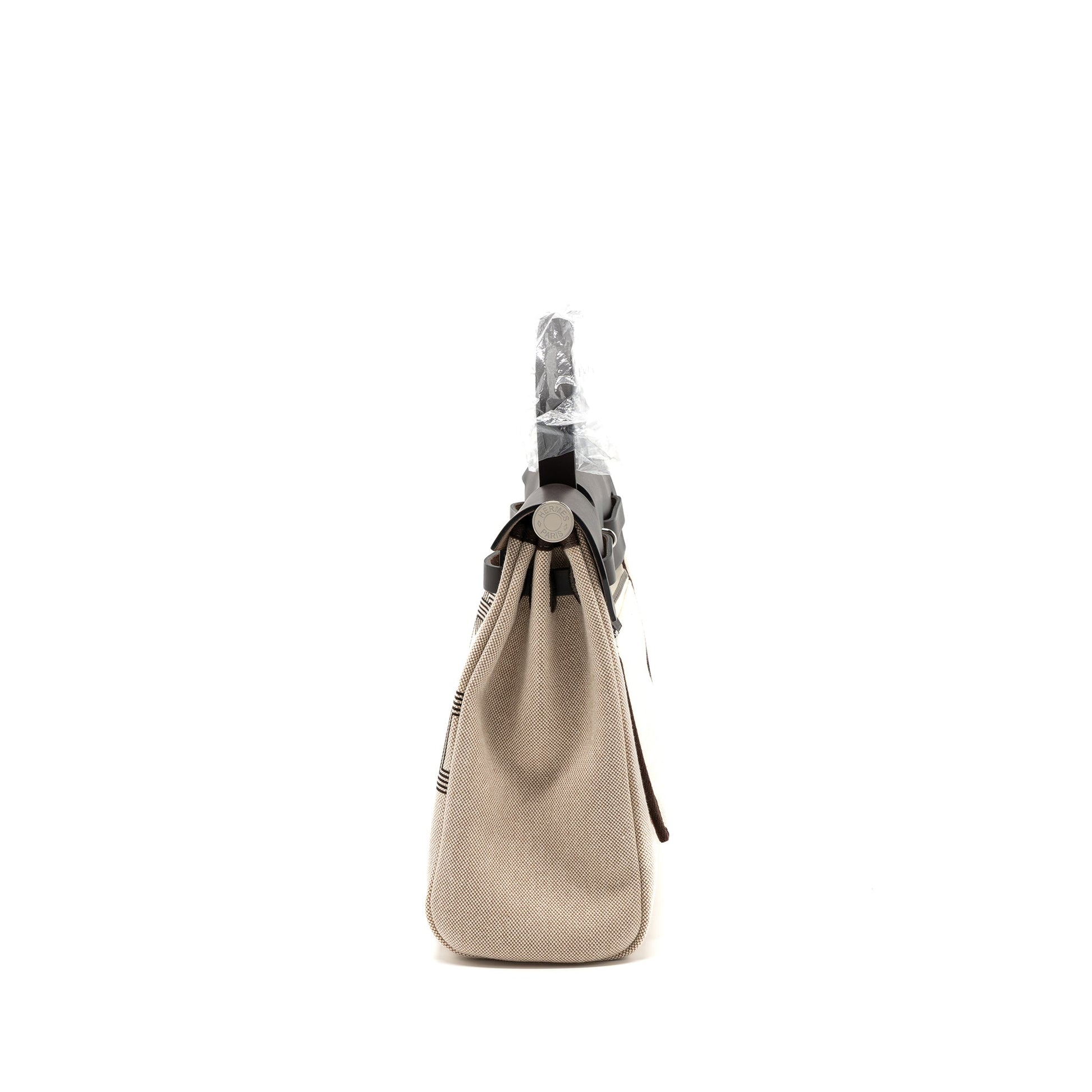 Hermes Herbag 31 Zip Bag Toile H Plume Hunter/ Canvas Ebene/ Ecru/ Beige/ Ebene SHW Stamp u