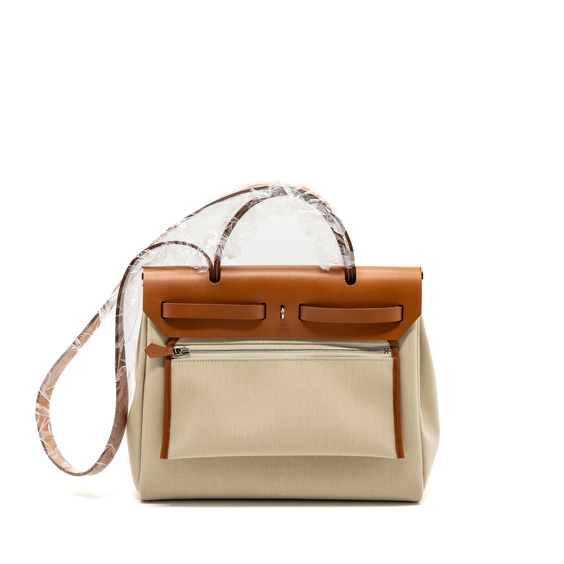 Hermes Herbag 31 Zip Bag Toile Militaries/Vache Hunter Beton/Fauve SHW Stamp B