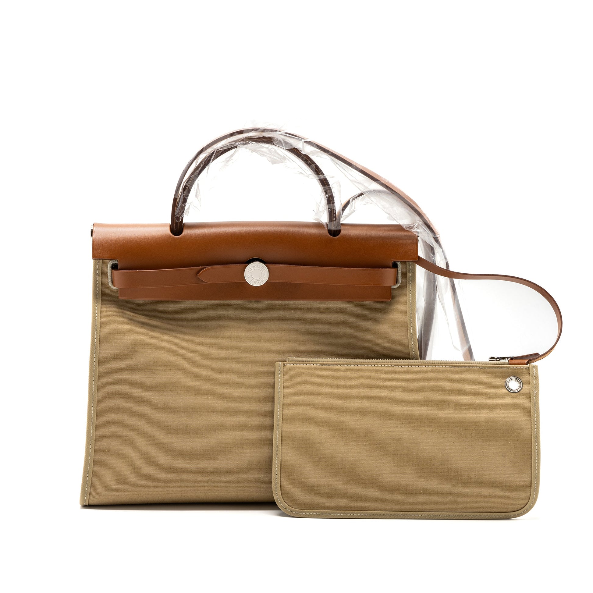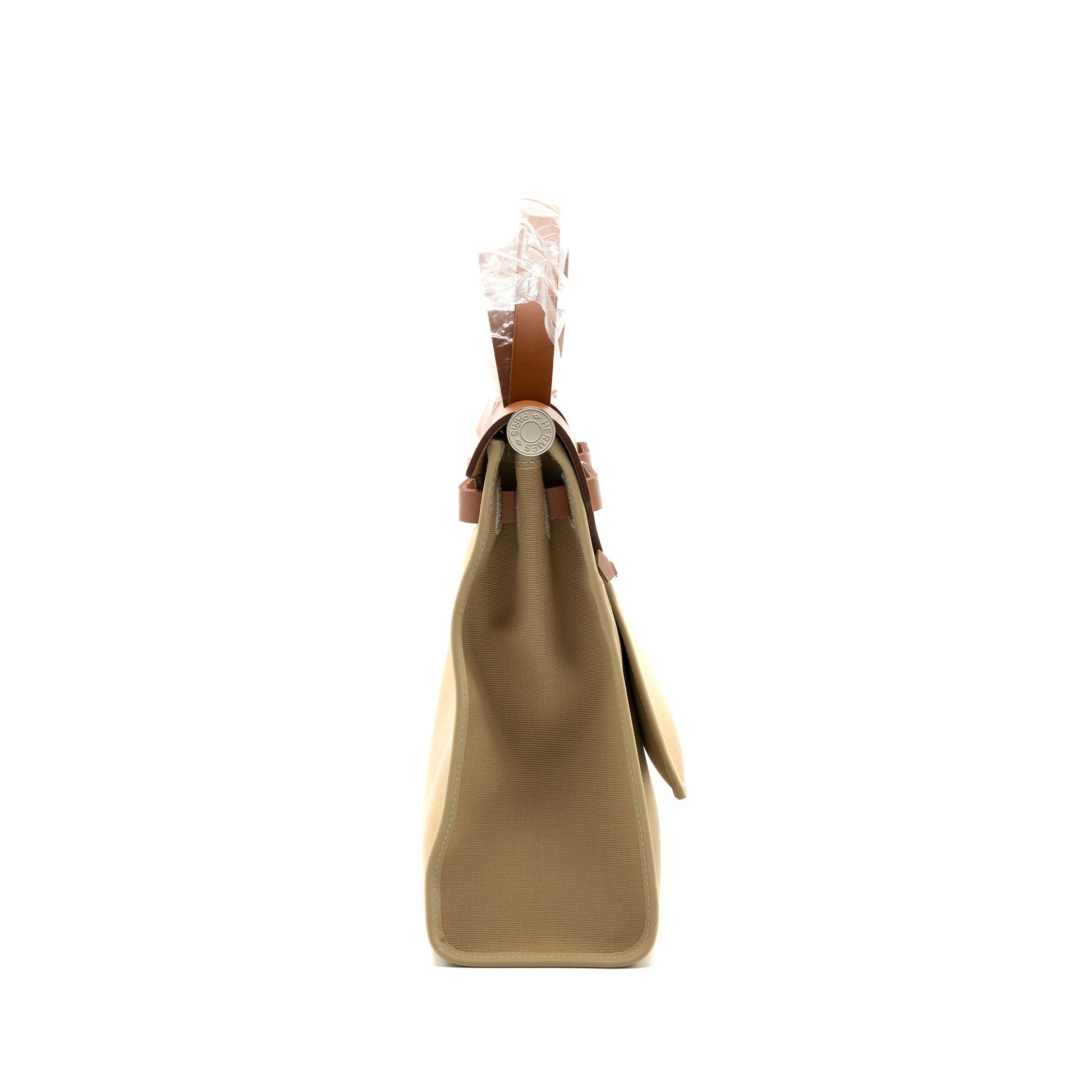 Hermes Herbag 31 Zip Bag Toile Officer Canvas Trench/Fauve SHW Stamp Y