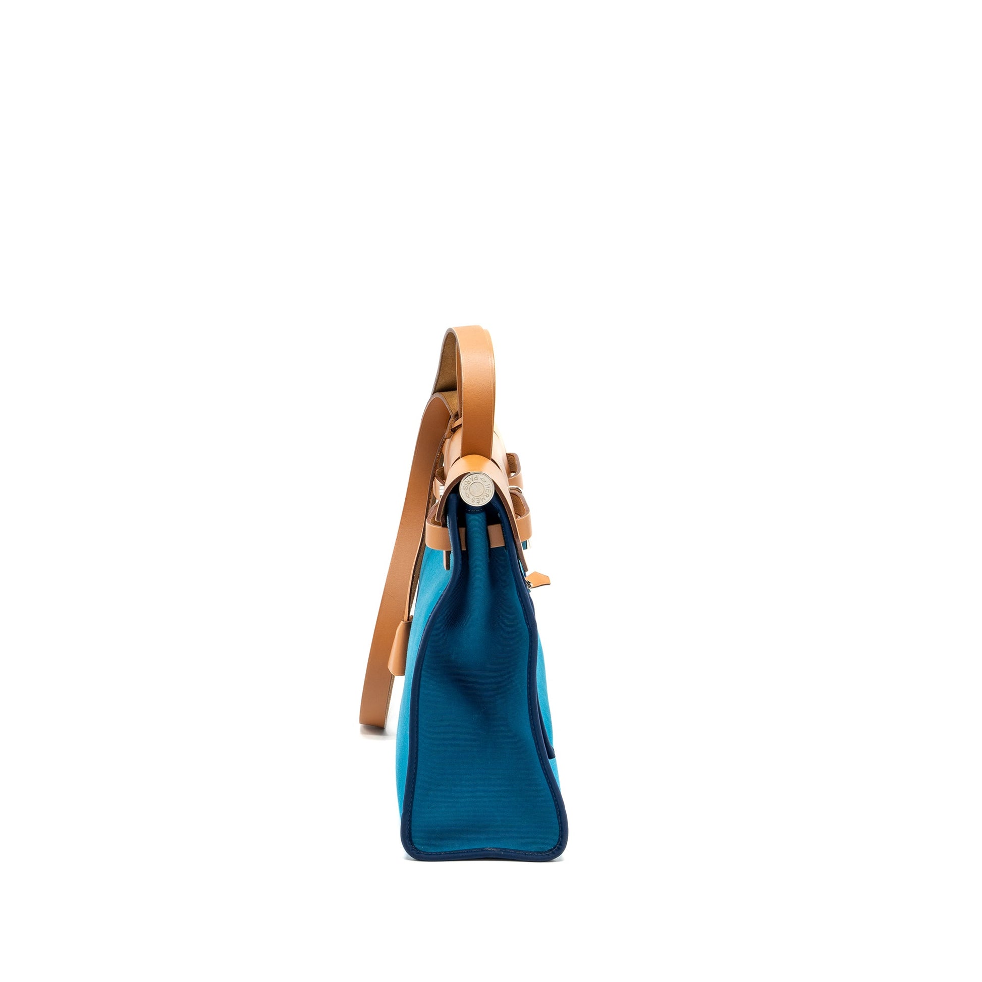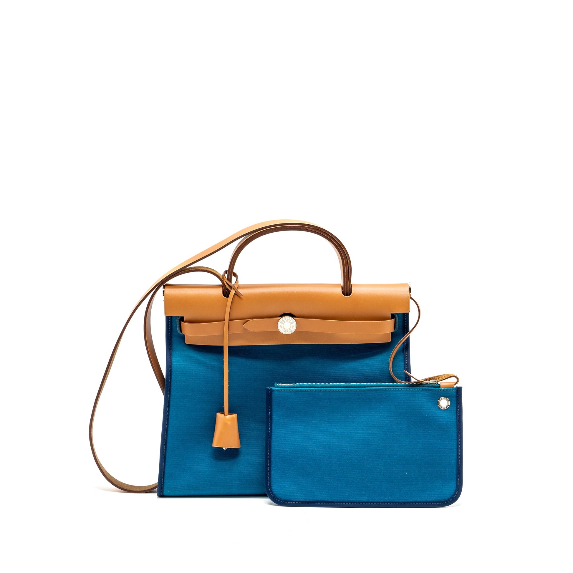 Hermes herbag zip 31 bag canvas / hunter leather blue SHW square Q