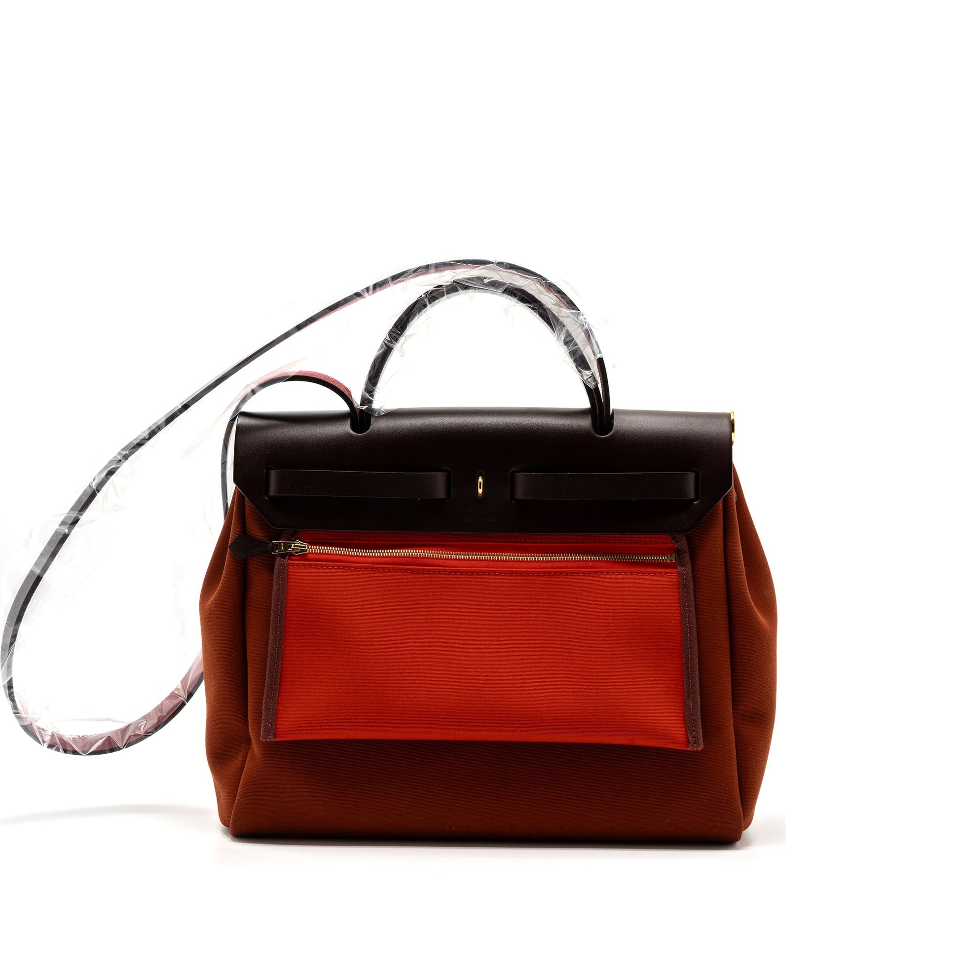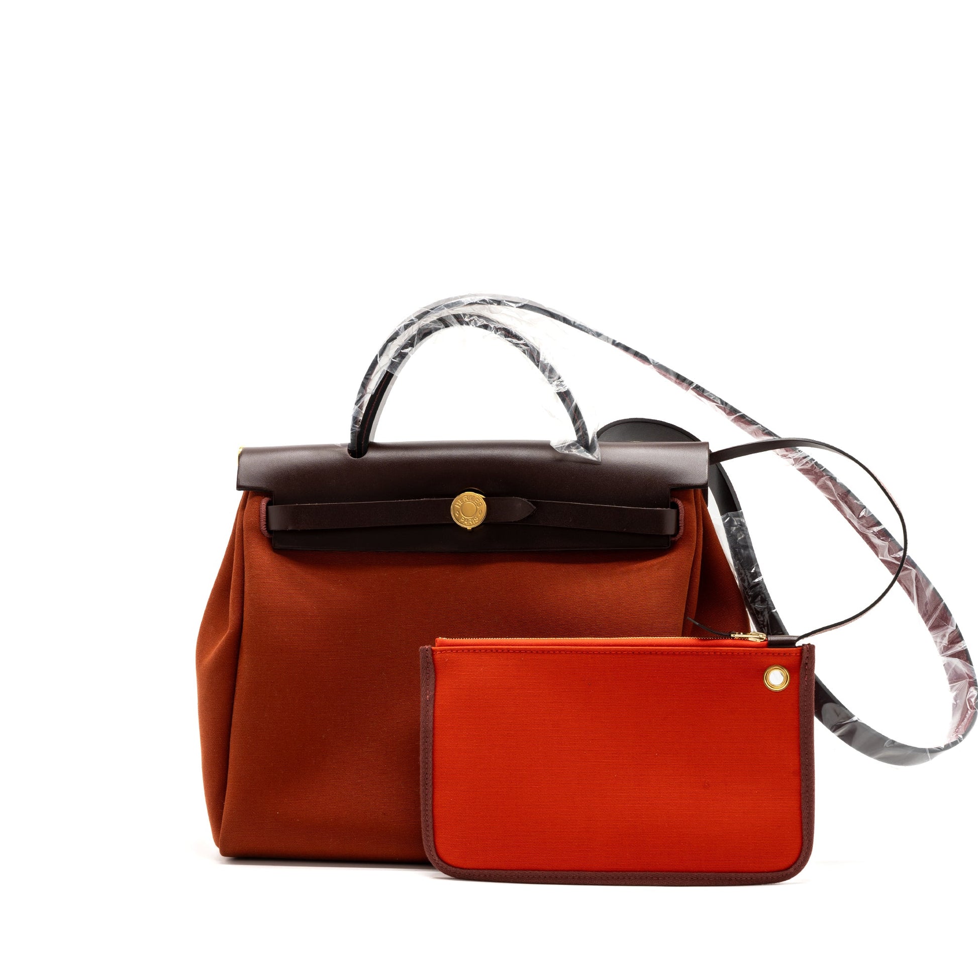 Hermes herbag zip 31 bag canvas / hunter leather Cuvier / orange Mecano/ rouge sellier GHW stamp B