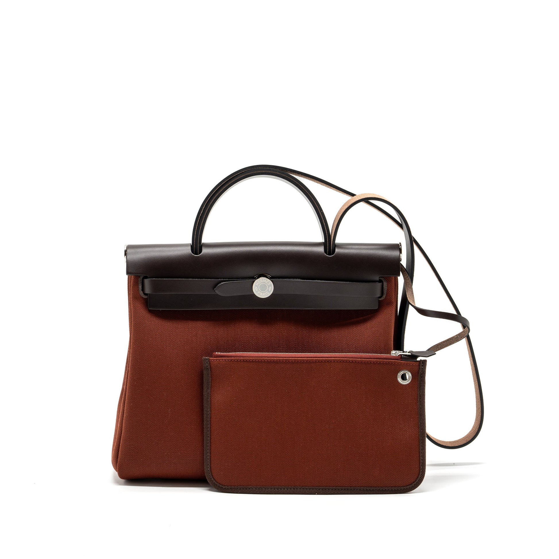 Hermes herbag zip 31 bag canvas/ hunter leather rouge H / Ebene SHW stamp Z