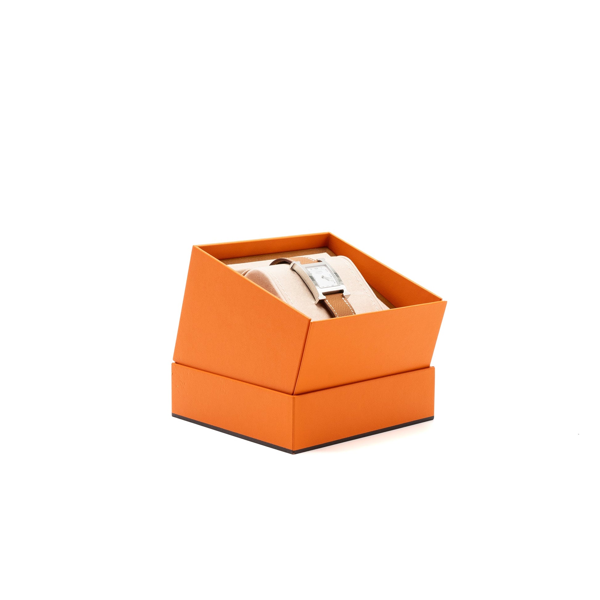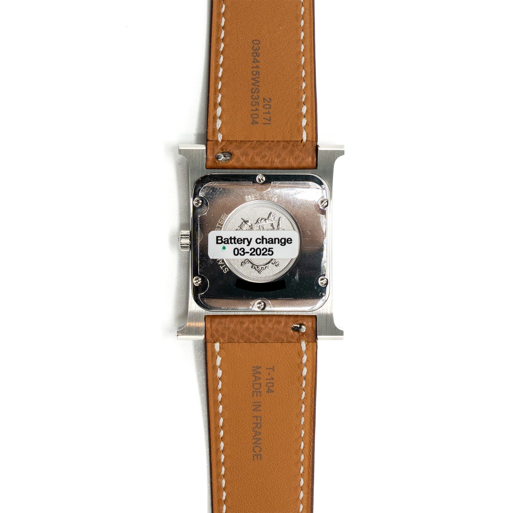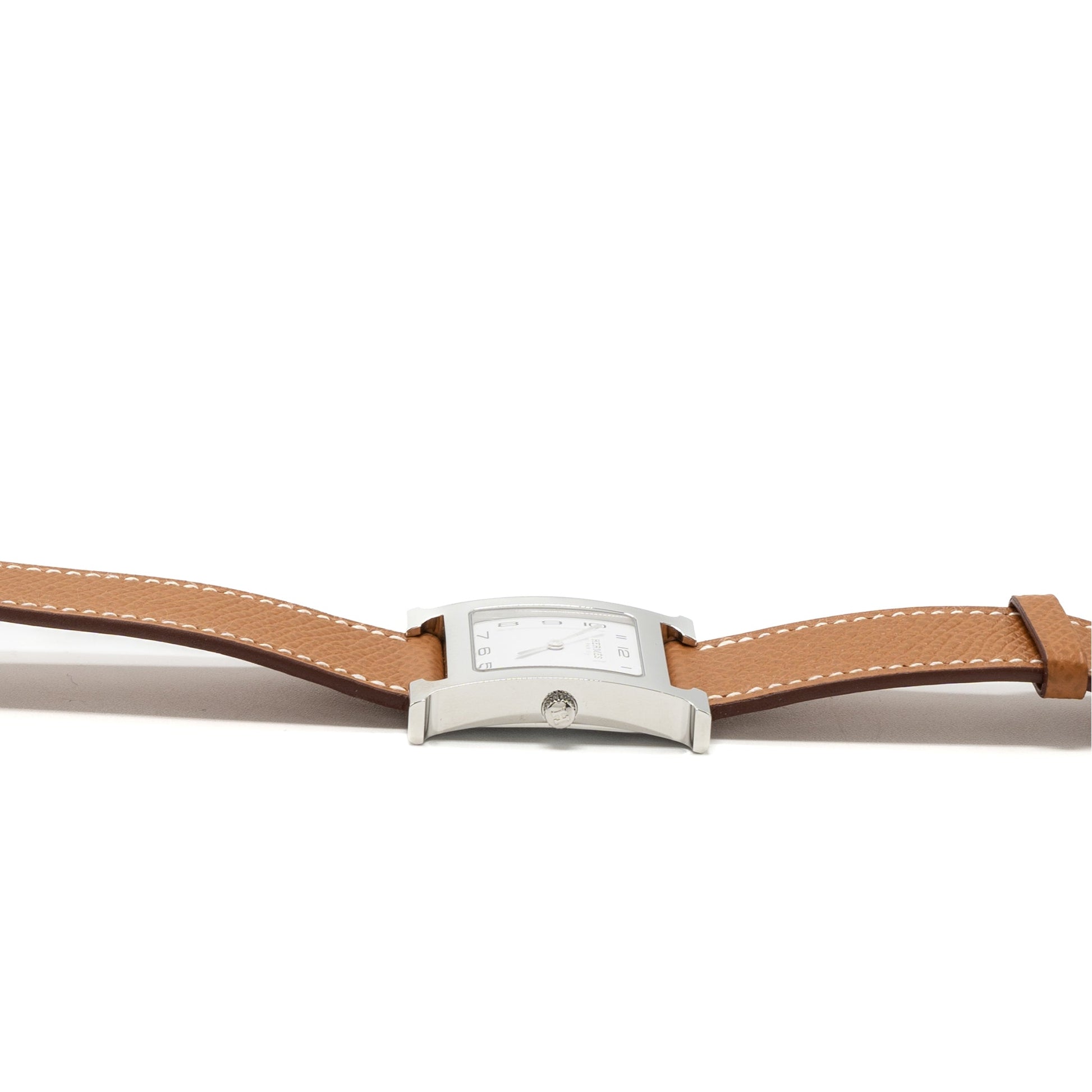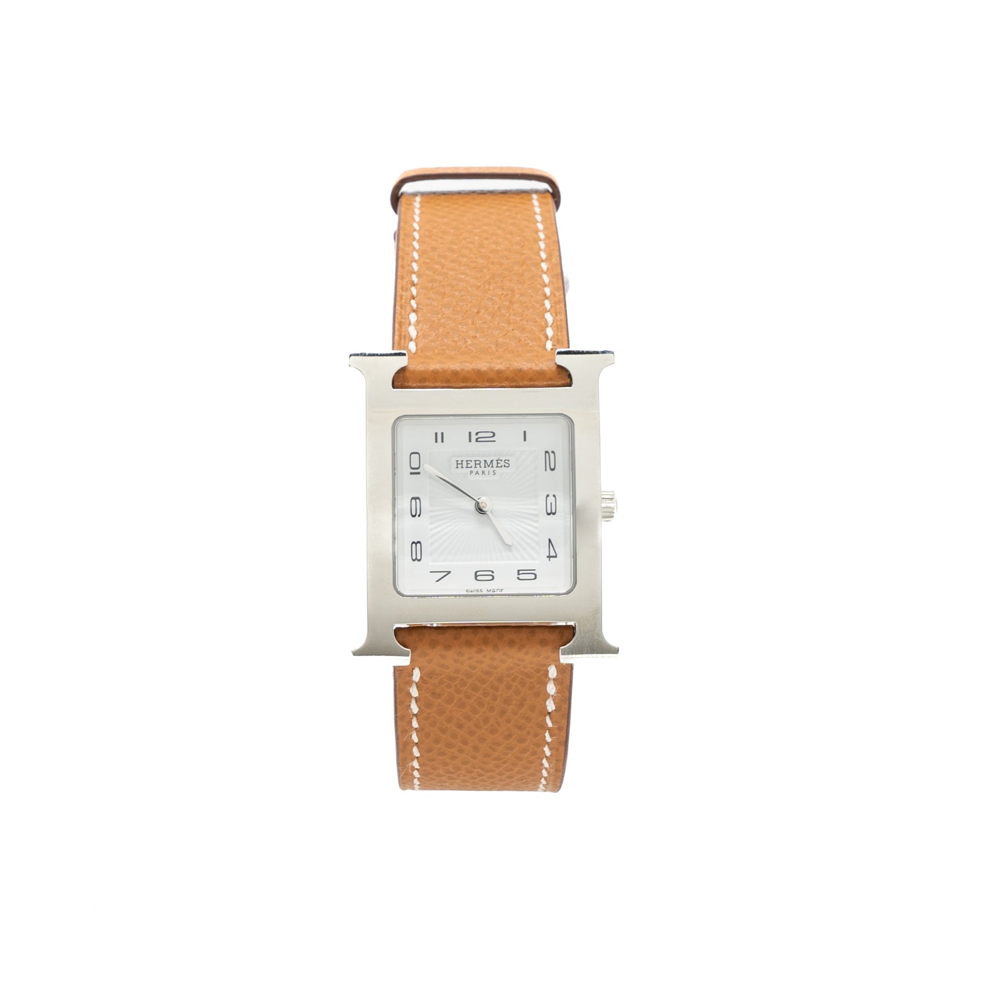 Hermes Heure H Watch Medium Model 30MM Stainless Steal White Dial Epsom Gold SHW