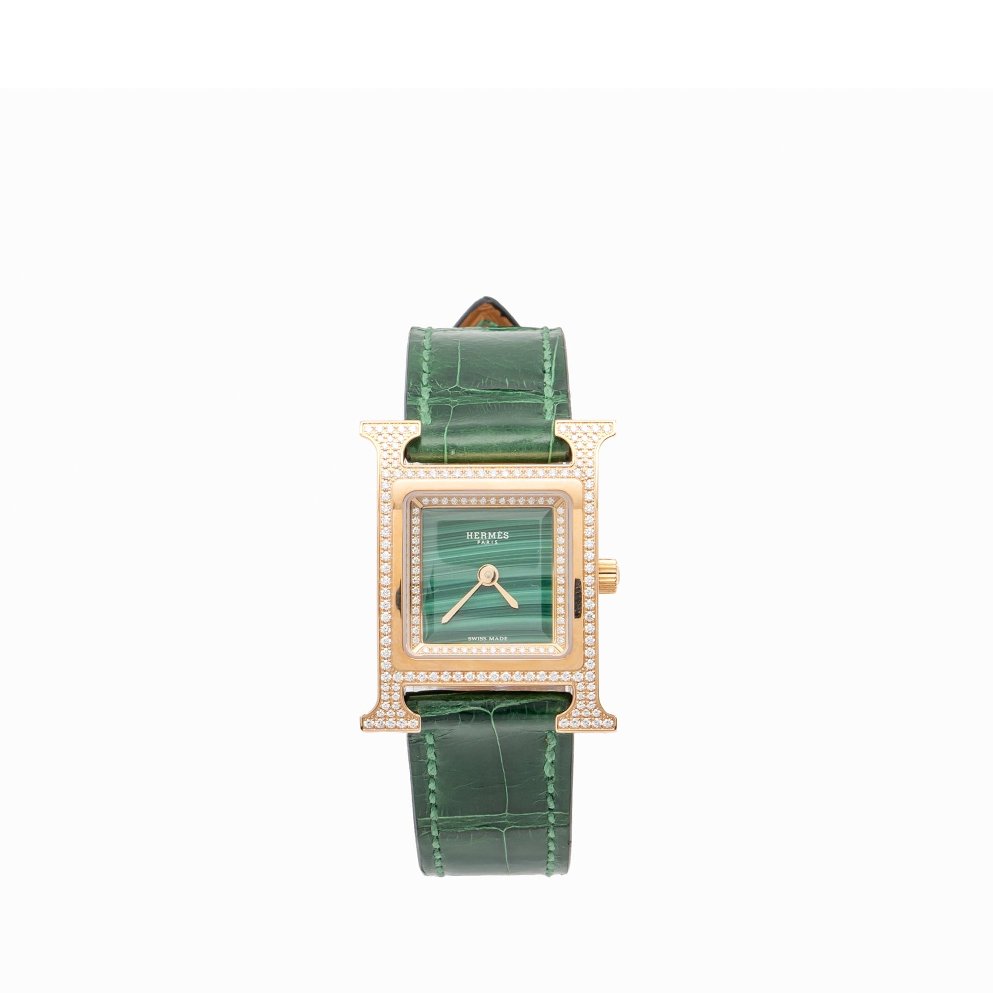 Hermes Heure Watch small model rose gold with diamonds green dial