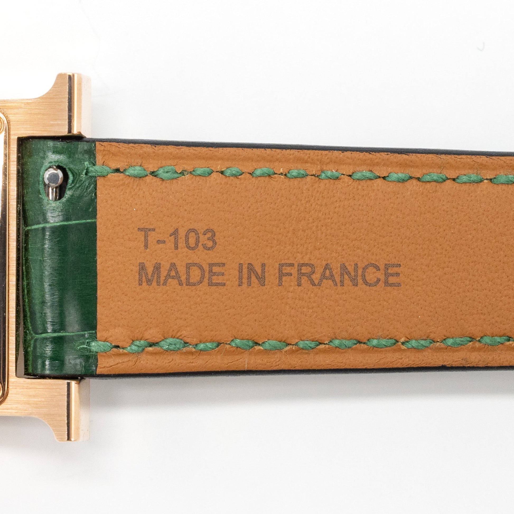 Details: Condition : 9.9/10 New ( This item is in New with s light creasing on leather strap.) Case: 21 x 21 mm Stainless Steel Case Wrist Size: 135 -165 cm (We do not offer exchange or refund if the size does not fit. Please contact our sales representative before the purchase for assistant) Glass : Anti-glare sapphire crystal Dial: Green Strap Material: Alligator leather Water-resistant to : 3 Bar Movement : Quartz Origin: Swiss Made Inclusion : I nner Box, Outer Box, Info Booklet, Certificate Booklet
