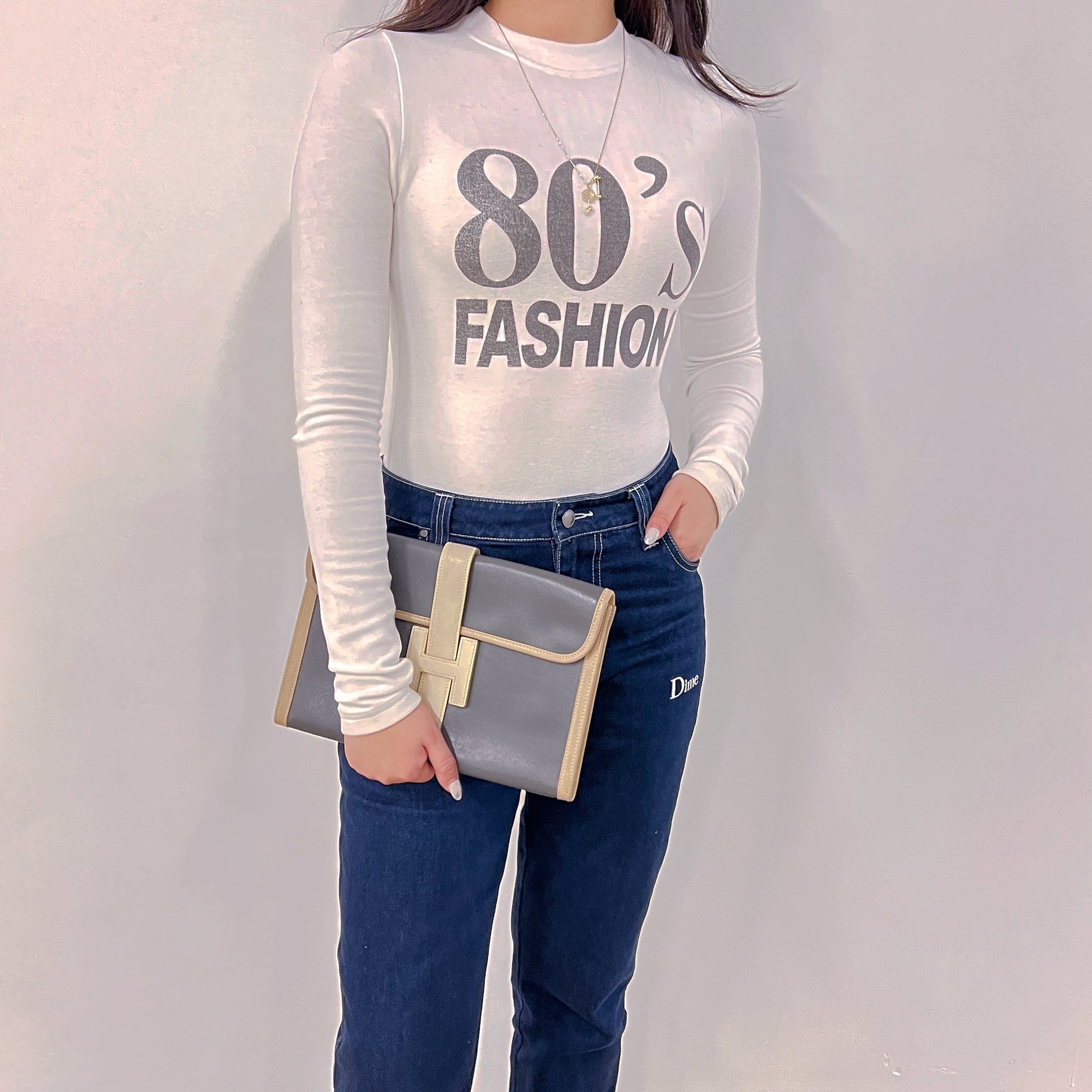 Details: Hermes Jige Clutch 98879 Product Details Size: W29cm× H19cm, W11.5'×H7.5' Color: Grey, beige Year: 2000 Accessory: None Condition: Very good Please Note: ・ All products in our store are second-hand and vintage. ・ITEM LOCATION IS CANADA. Order shipments outside of CANADA will be responsible for paying customs duties and taxes. ・ ・This item was cared for by a previous owner. ・Due to its vintage nature, the item shows signs of normal wear.