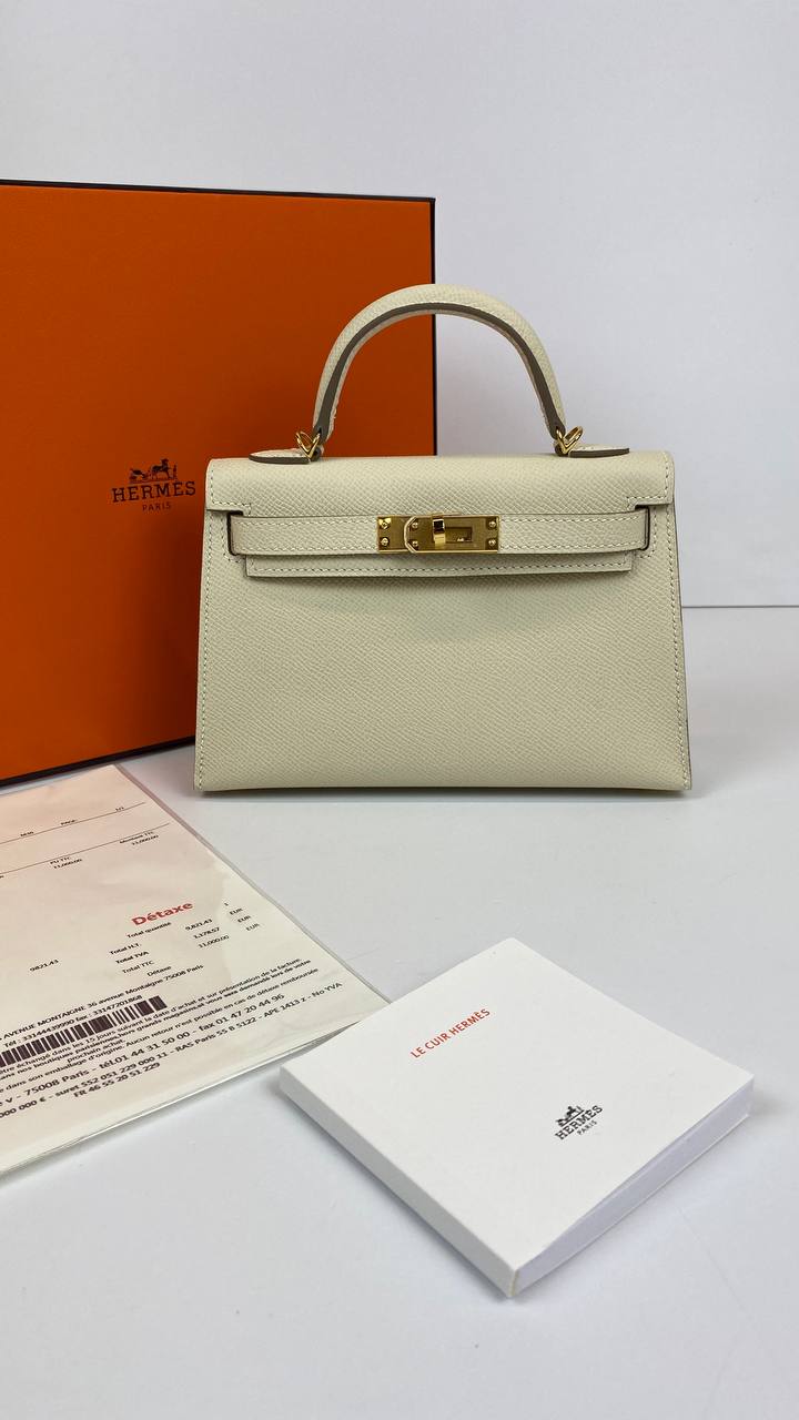 Details: A sophisticated beige Epsom leather Hermes Kelly bag with coveted gold hardware. Comes with Hermes signature orange box, shoulder strap and sleeper. Top Quality Hermes Kelly 20 Mini bag in classic black. NEW or NOT WEARABLE of the Hermes Kelly 20cm retains its value due to the high demand for this limited style. Last Sale BAG MEASURES: LENGTH 20cm / 8 7/8' TALL 12cm / 4 3/4' DEEP 6cm / 2 3/8'