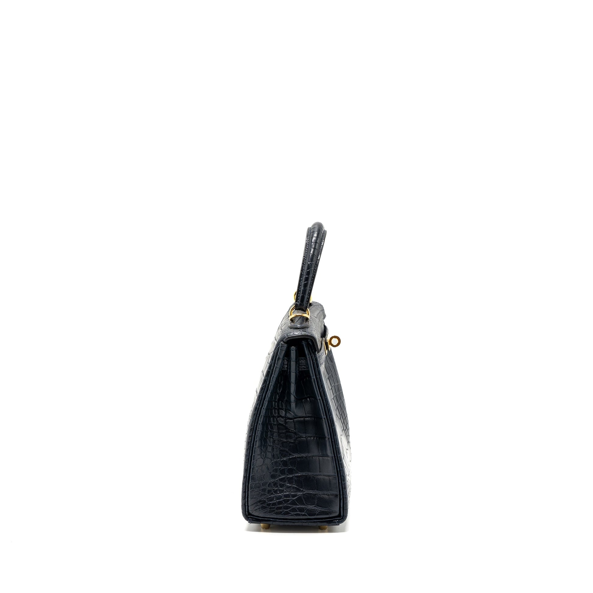 Hermes kelly 25 matte crocodile alligator mississippiensis blue indigo GHW stamp Y