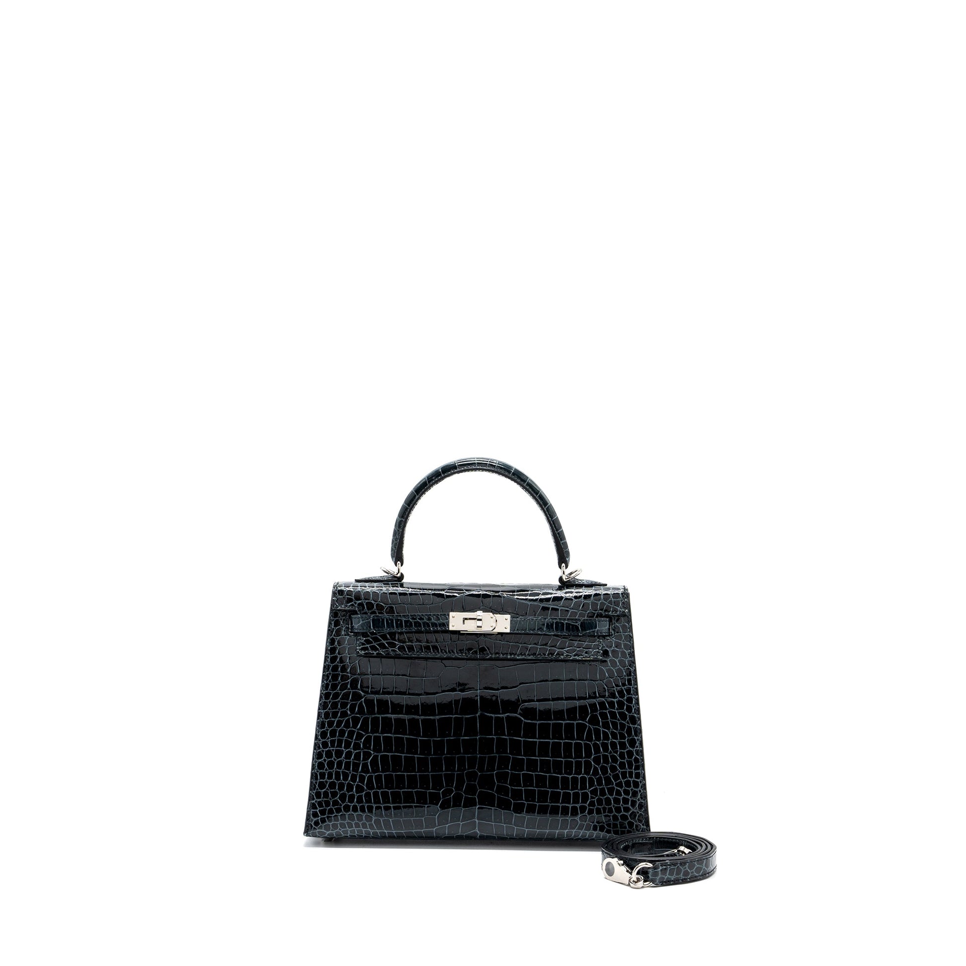 Hermes kelly 25 shiny crocodile Porous V0 Vert Rousseau SHW stamp Z