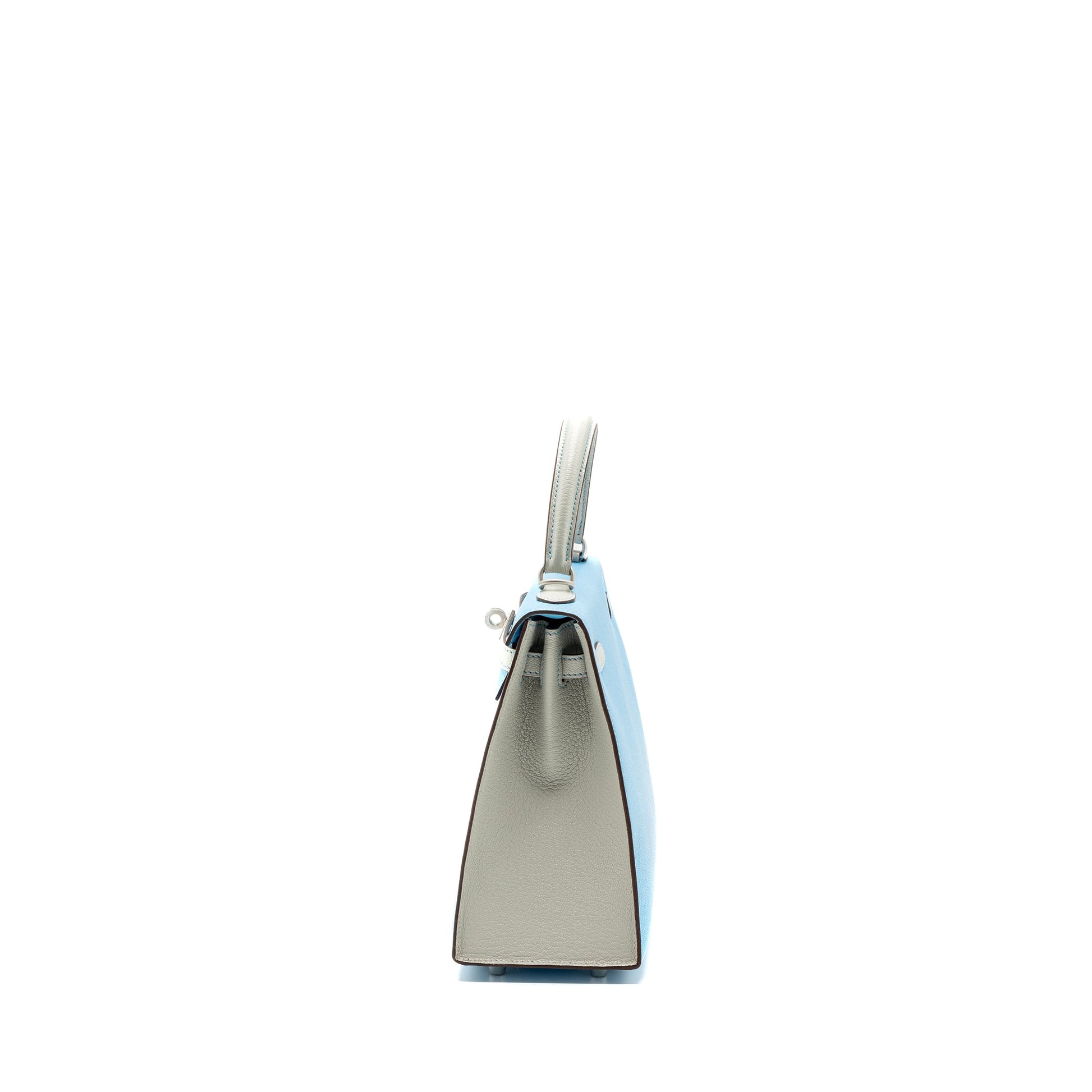 Hermes Kelly 25 special order chèvre Mysore blue Celeste / Gris Perle brushed SHW Stamp Z