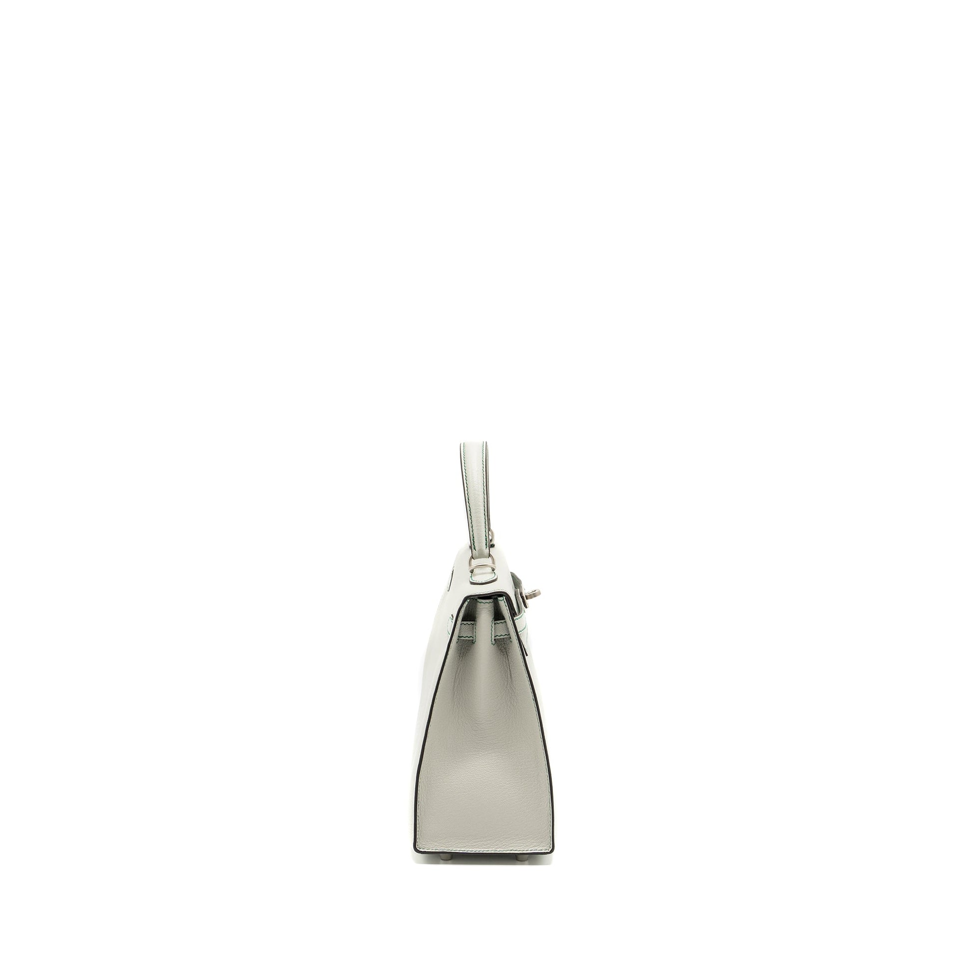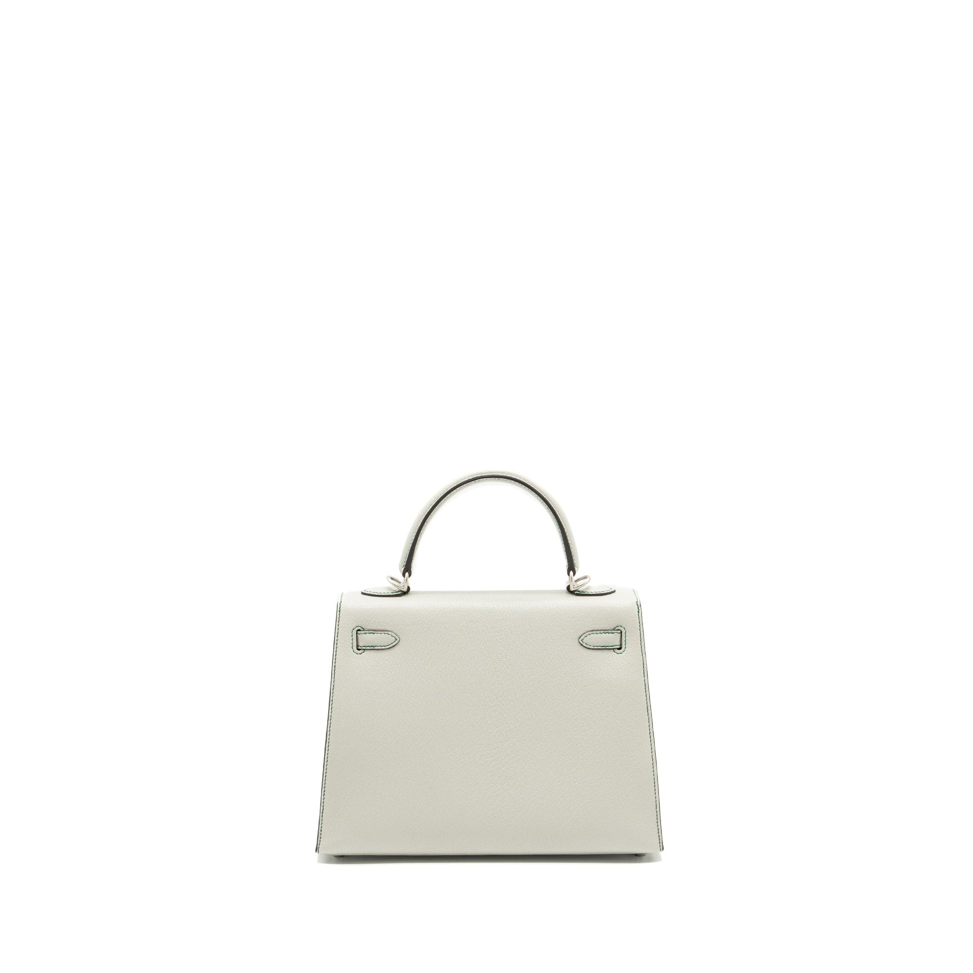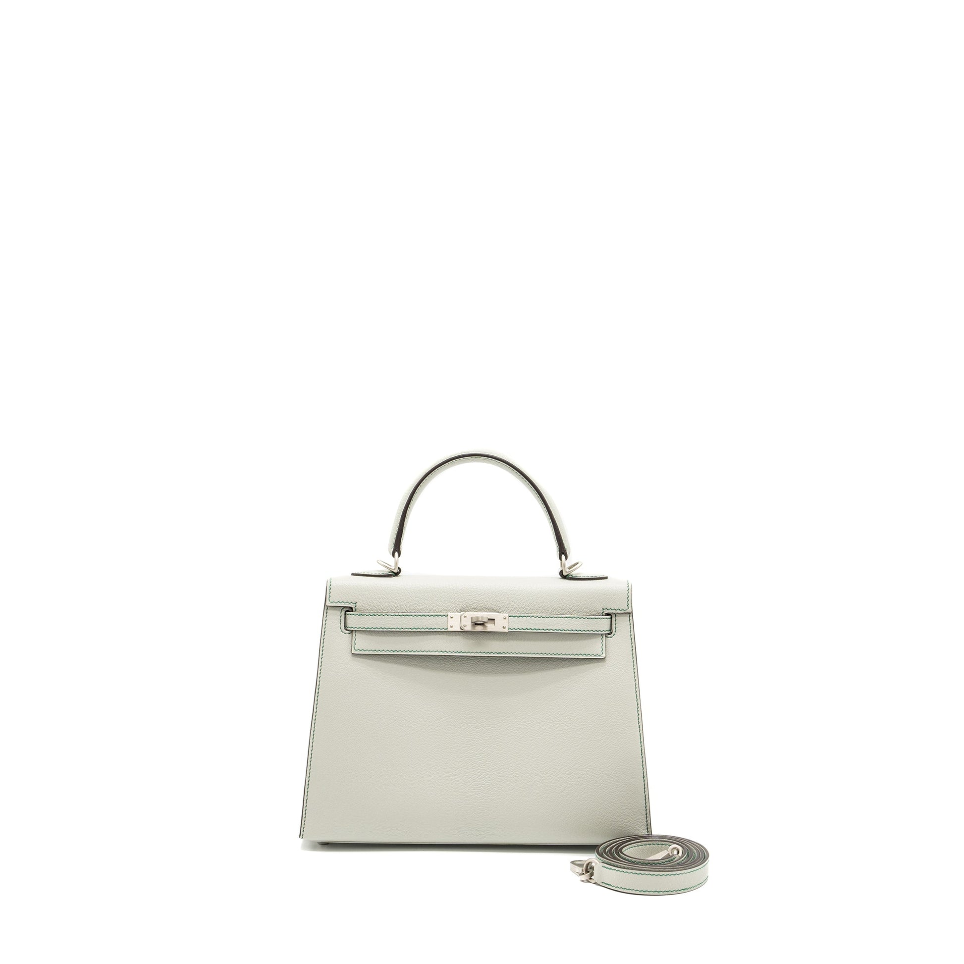 Hermes Kelly 25 Special Order Chèvre Mysore Gris Perle/Malachite/Vert Emeraude Brushed SHW Stamp U