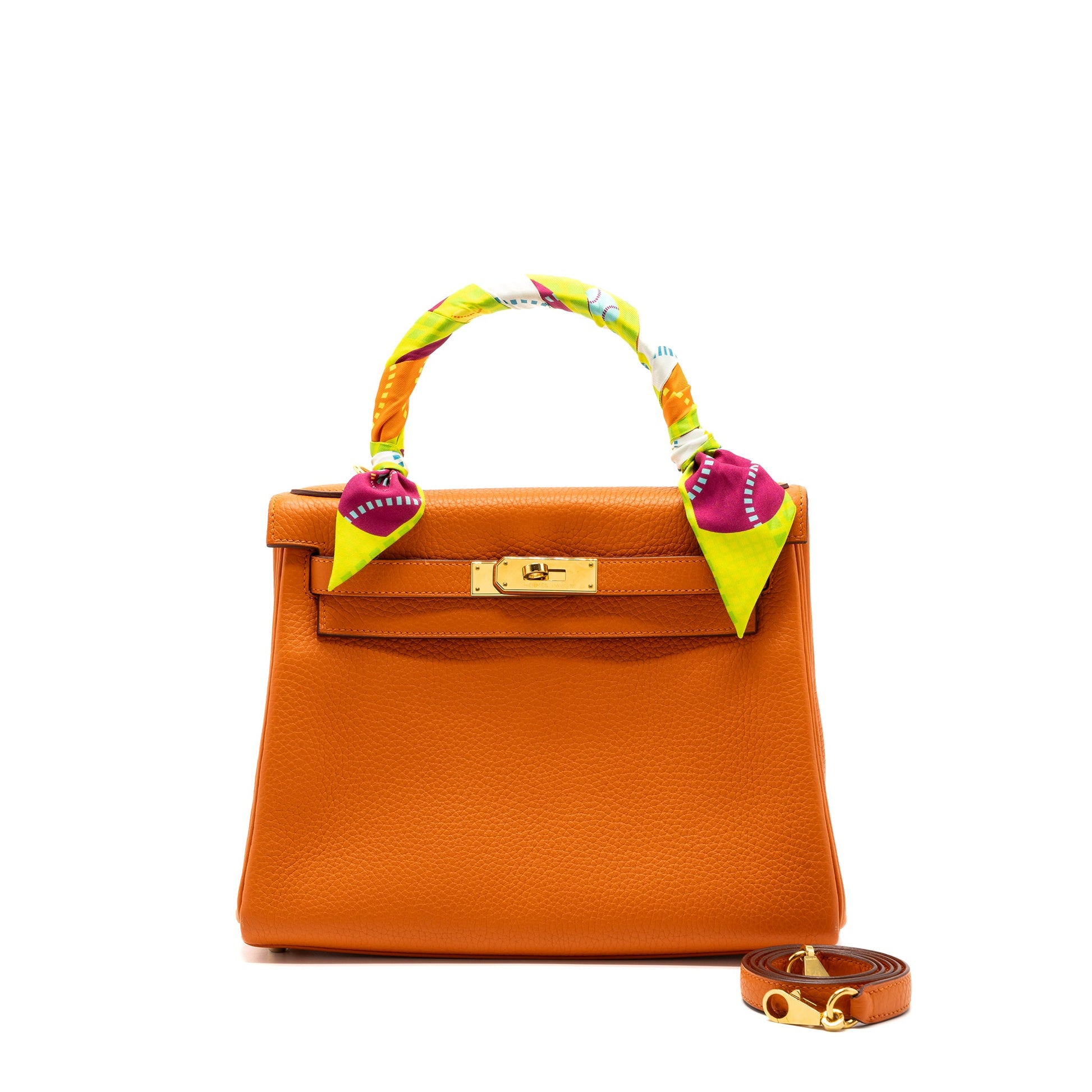 Hermes kelly 28 clemence leather 93 orange GHW stamp X