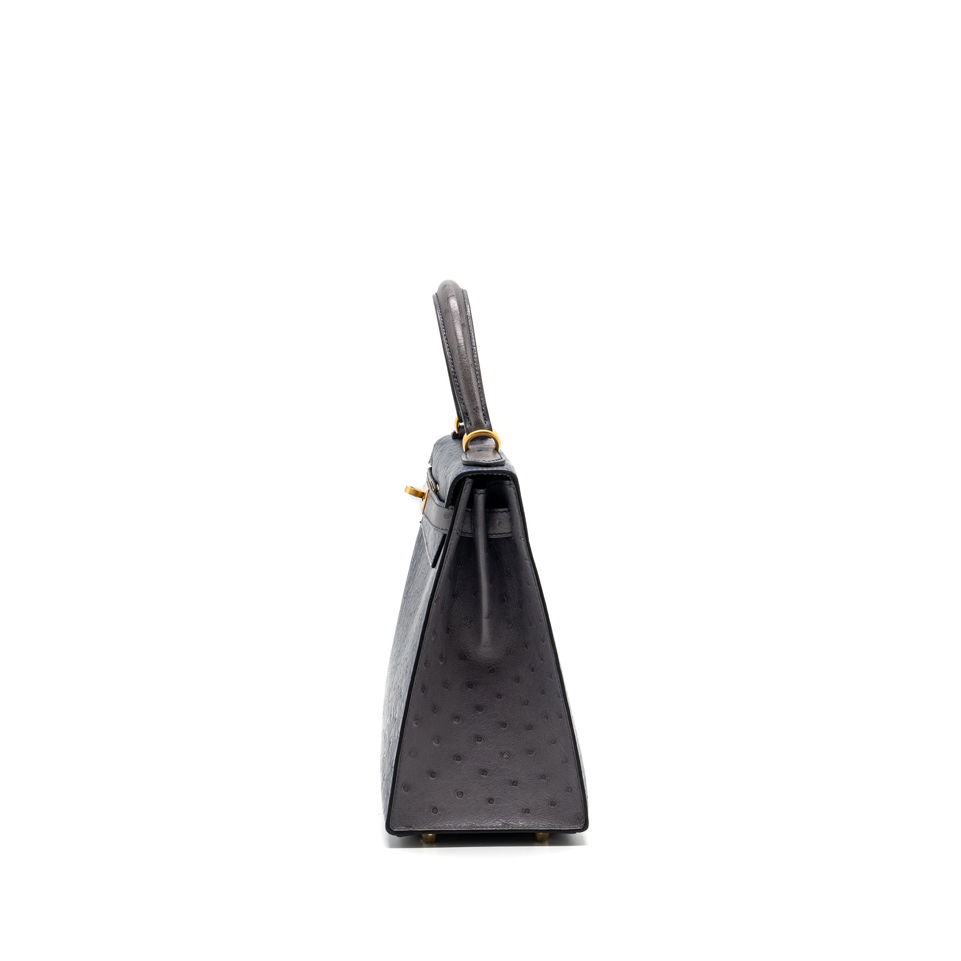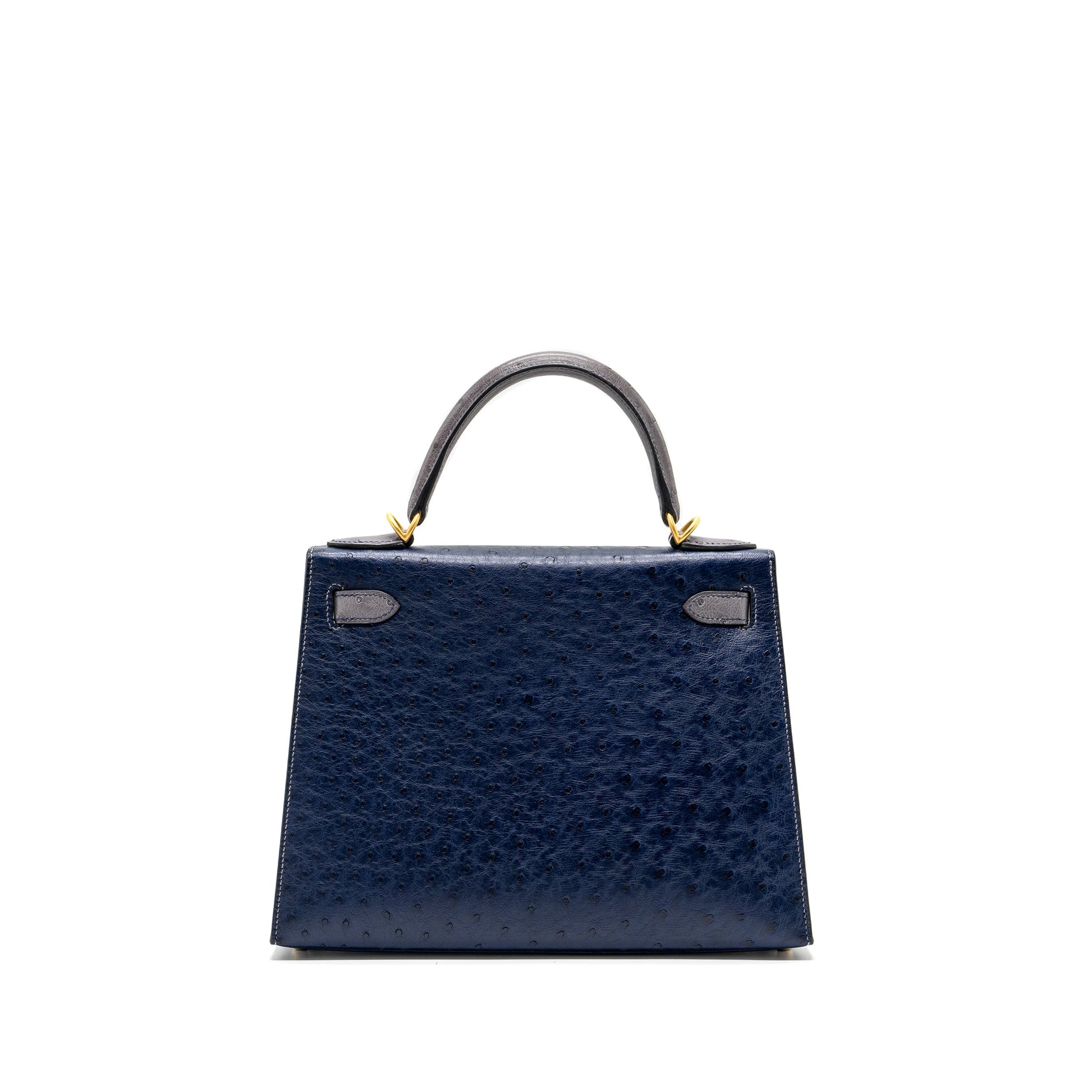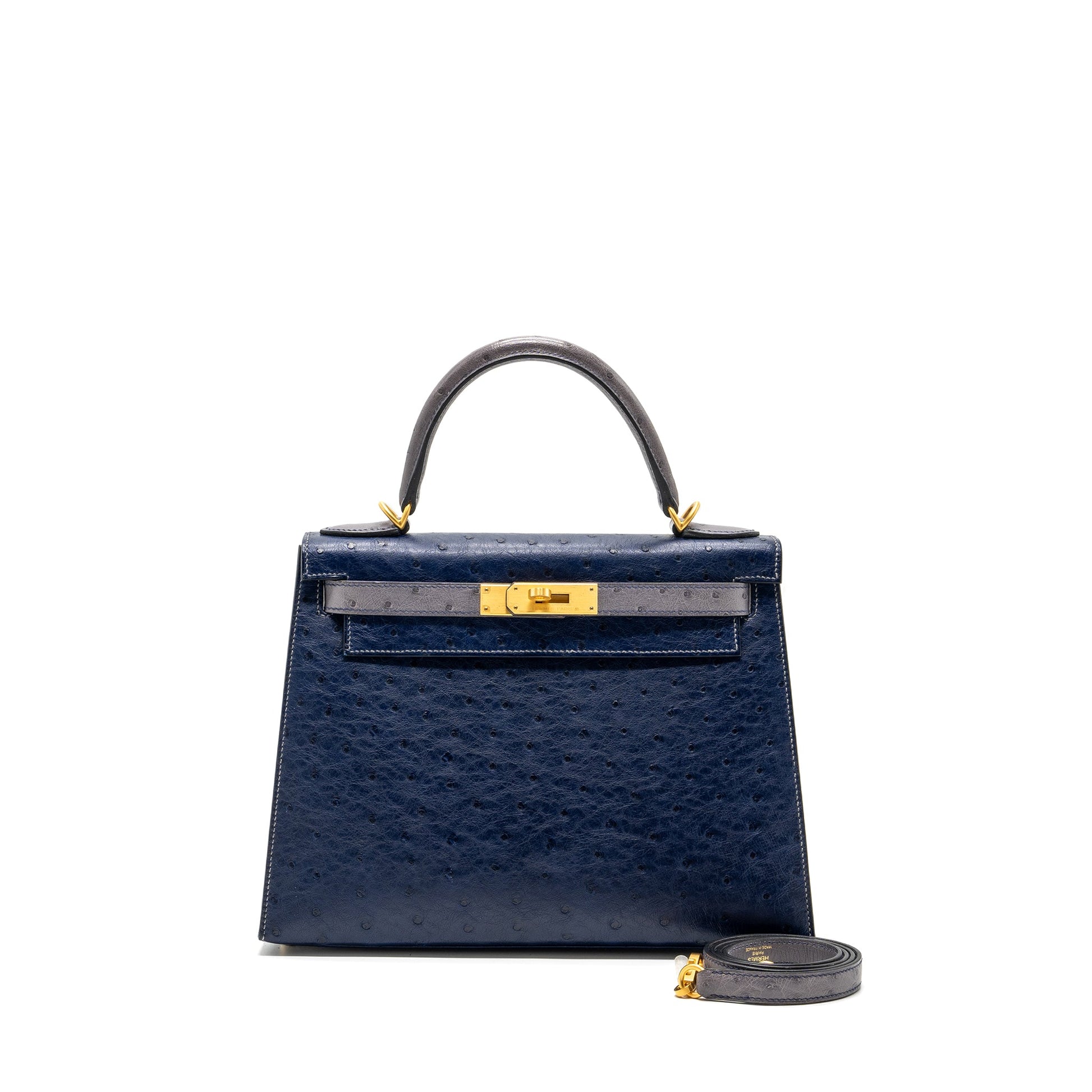 Hermes Kelly 28 Ostrich Blue Iris/ Gris Agate GHW Stamp D