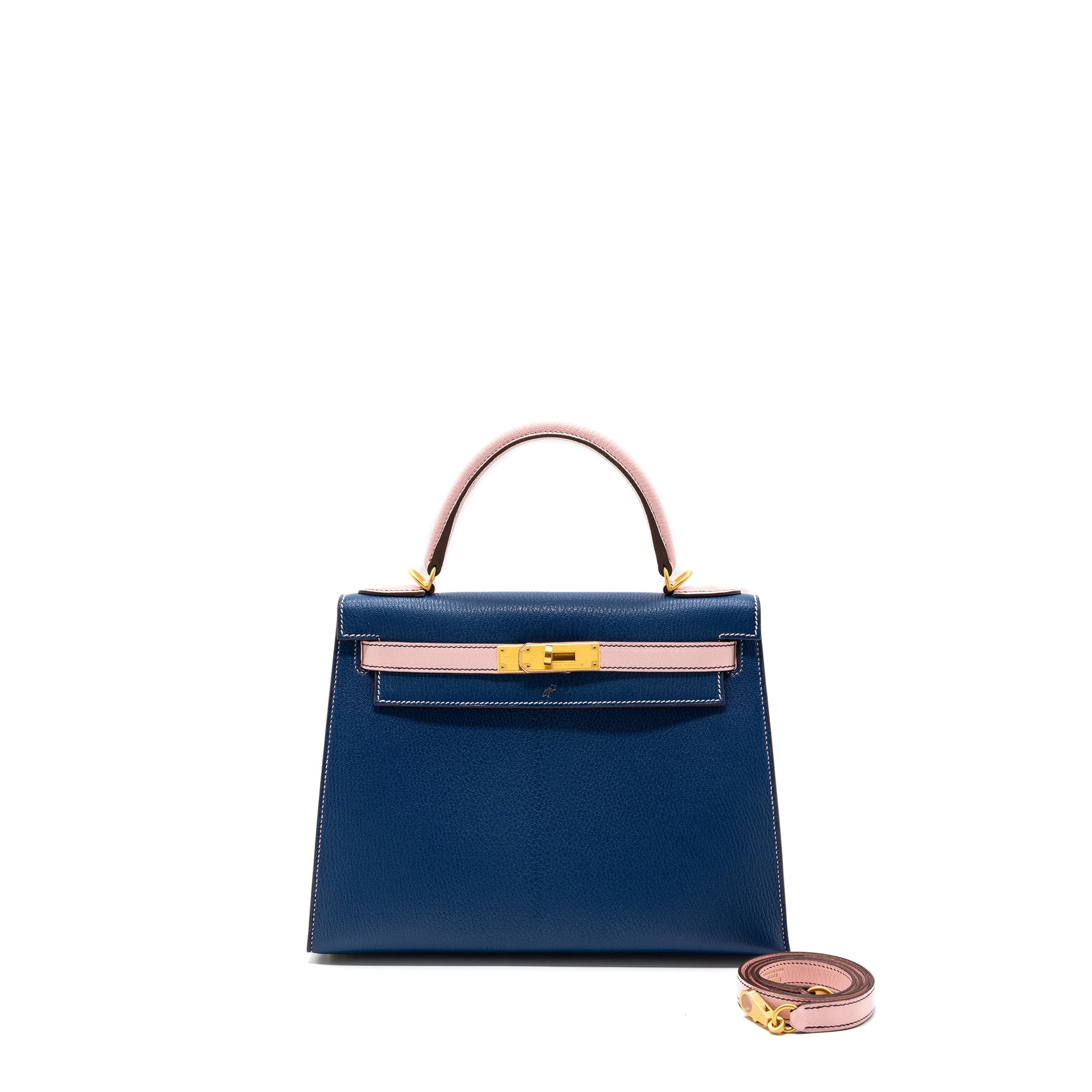 Hermes kelly 28 special order chevre mysore blue sapphire / rose sakura brushed GHW stamp C