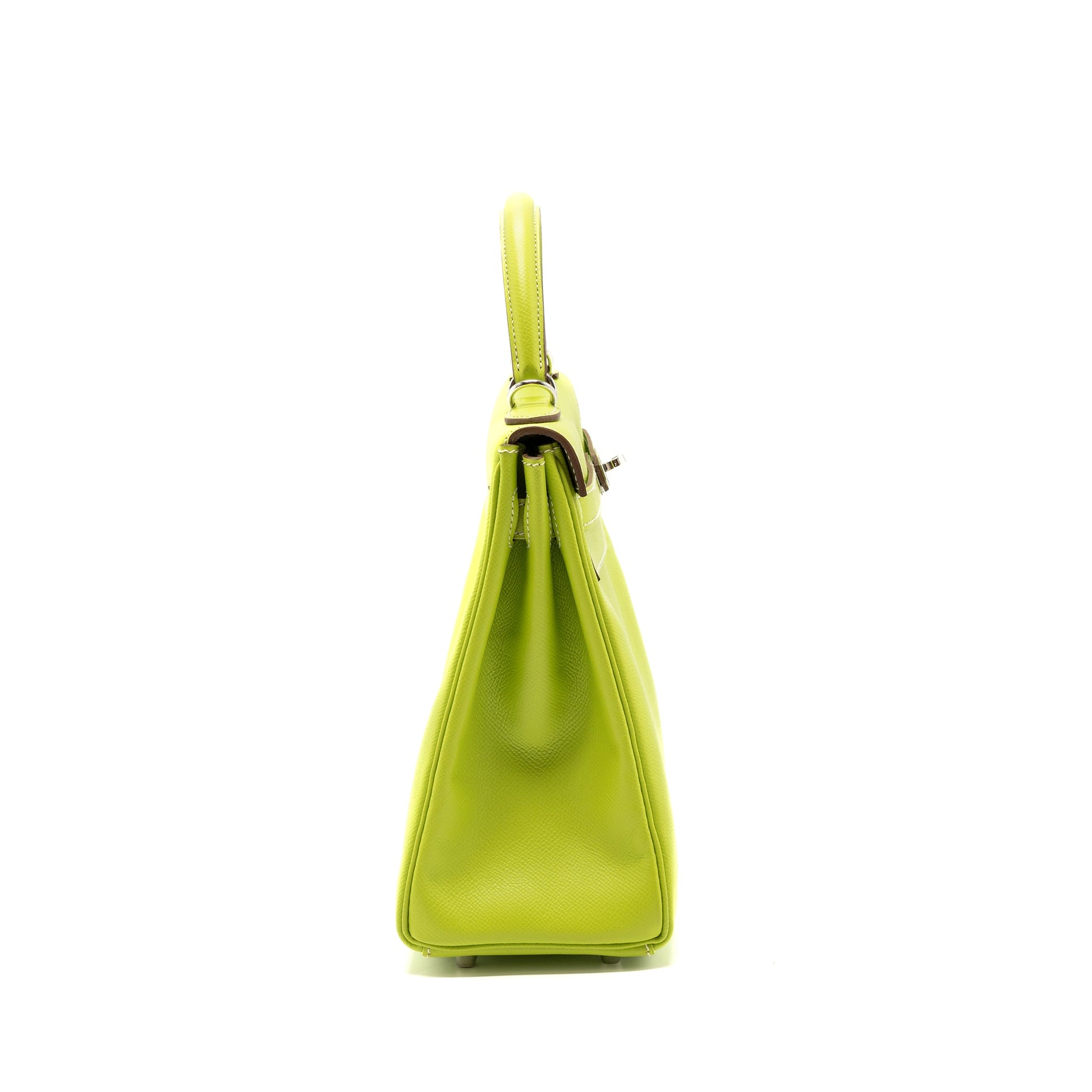 Hermes Kelly 32 Epsom Kiwi/Olive Green SHW Stamp Square O