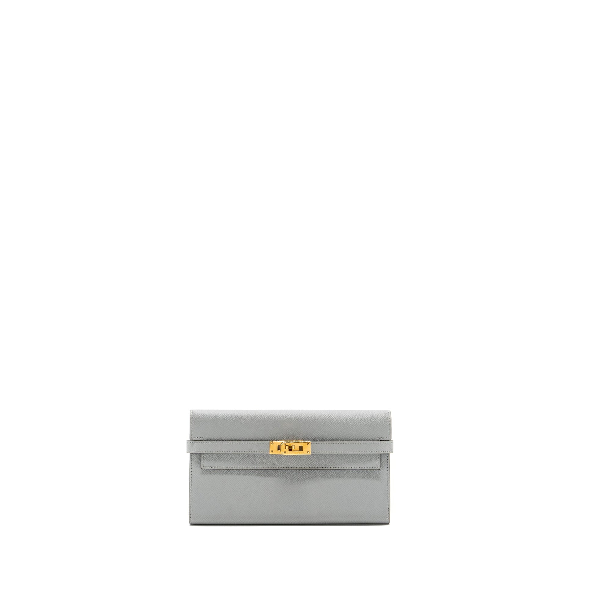 Hermes Kelly Classic Long Wallet Epsom 8U Bleu Glacier GHW Stamp C
