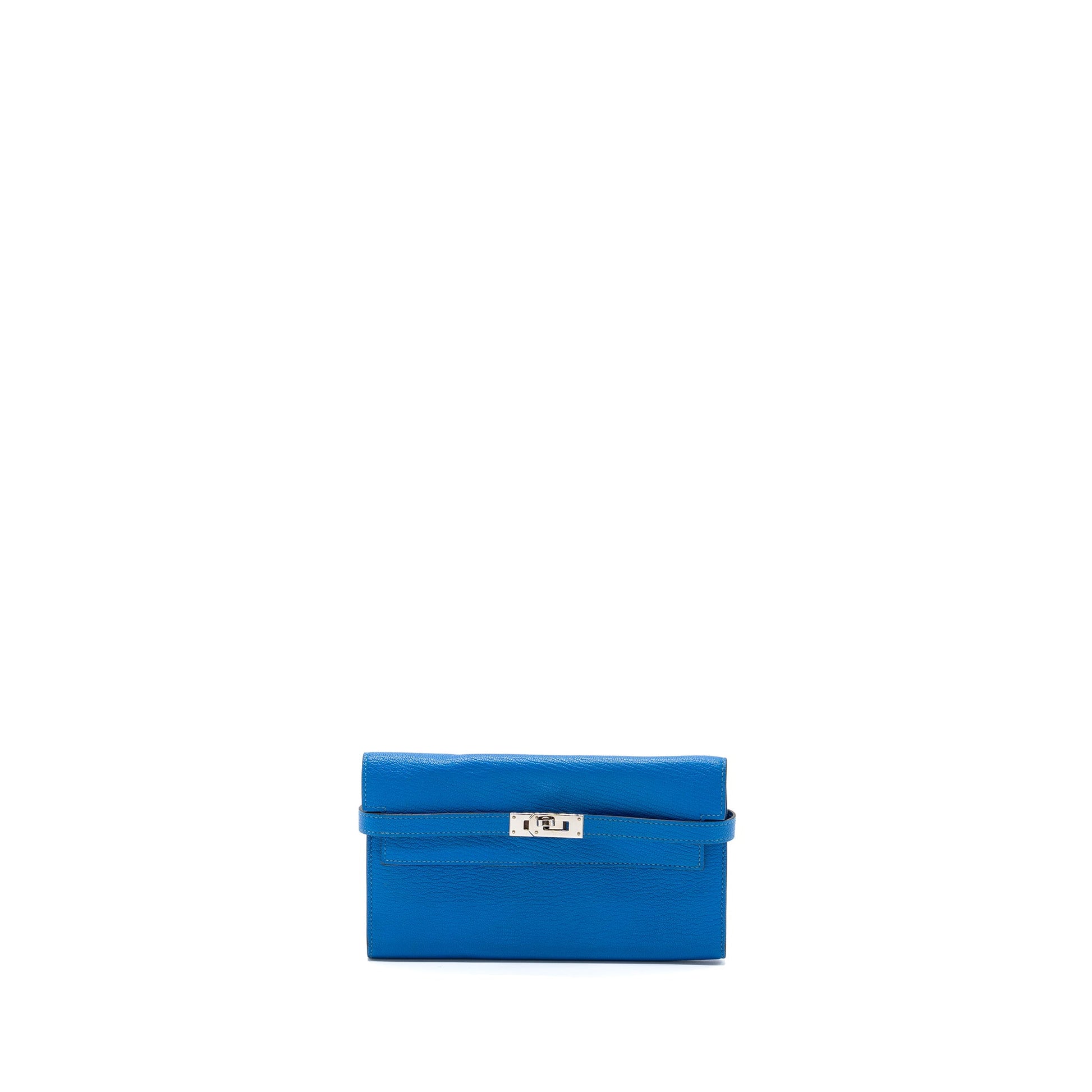 Hermes Kelly Classic Long Wallet Chèvre Mysore Blue Hydra SHW Stamp X