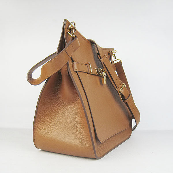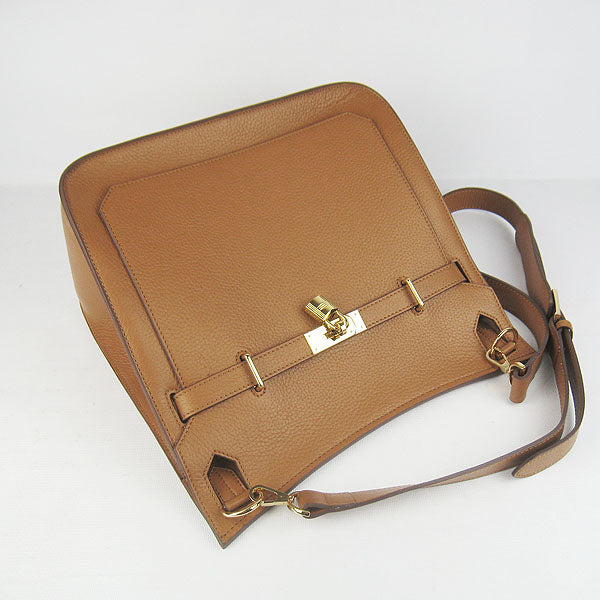 Hermes Leather Shoulder bag H6508 light coffee golden