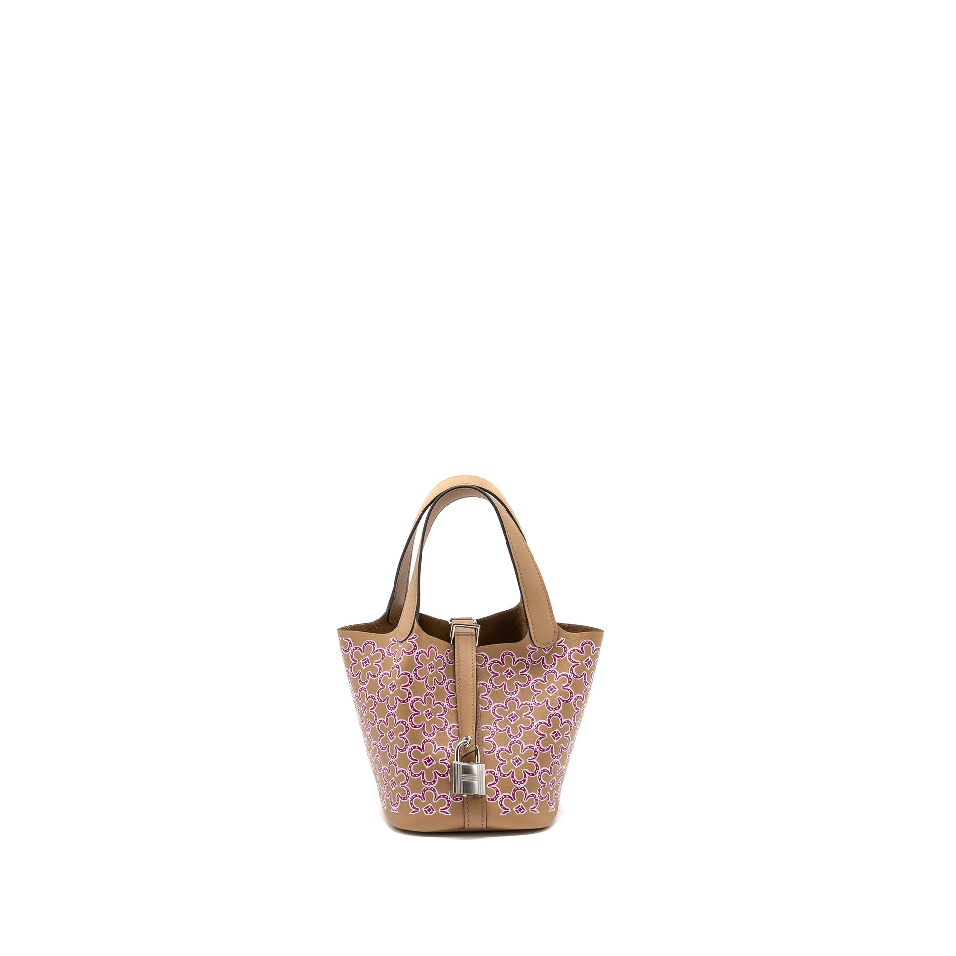 Hermes Lucky Daisy Micro Picotin Swift Chai-Rose-Blanc/Chai SHW Stamp U
