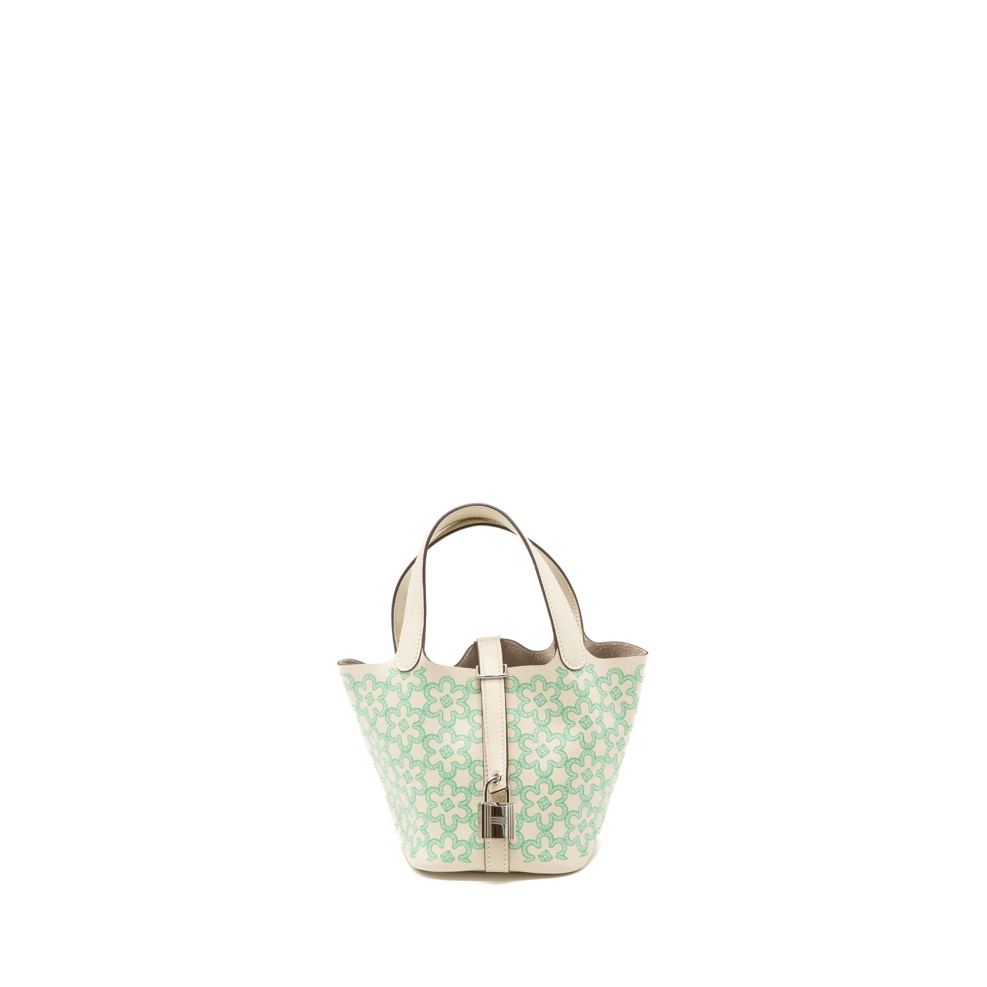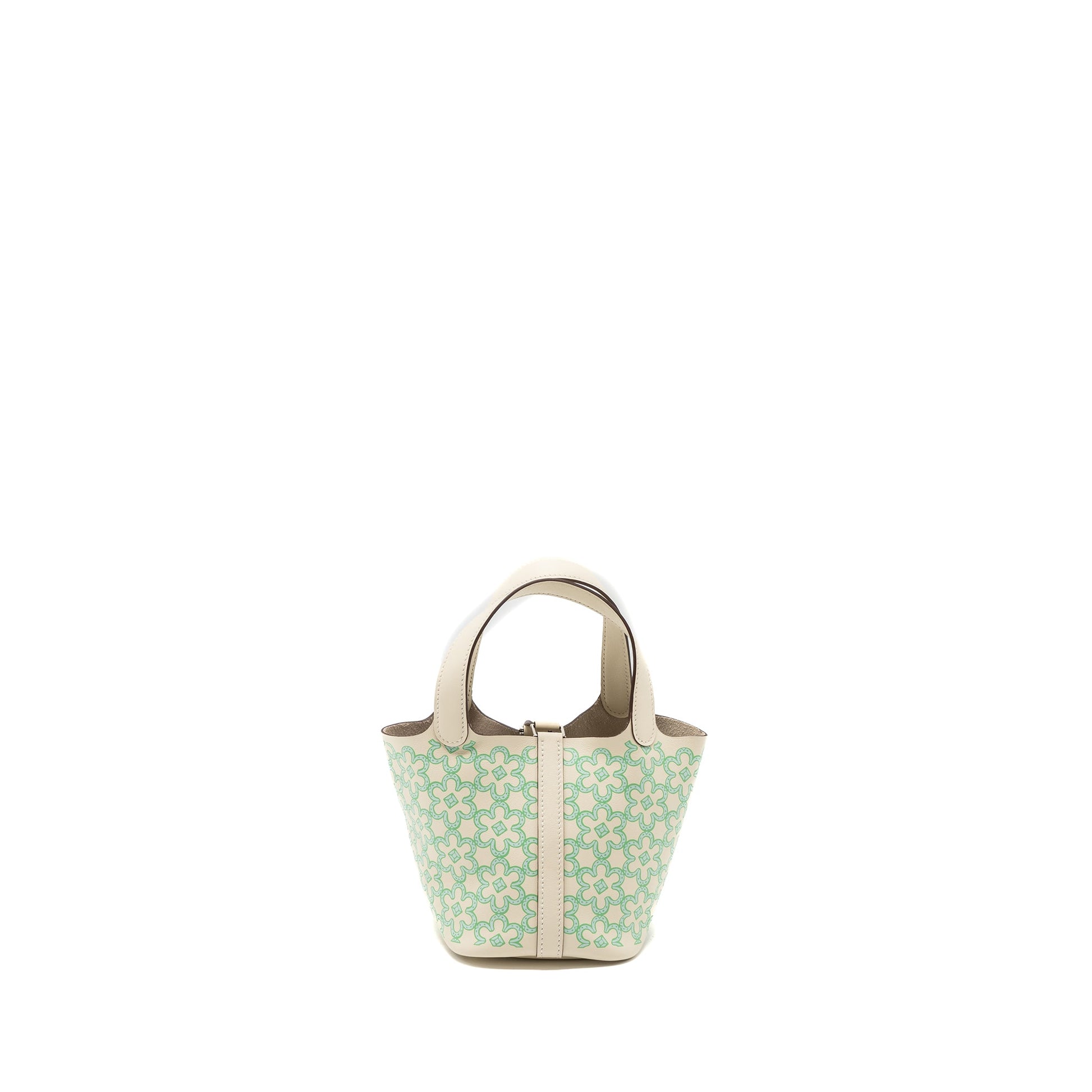 Hermes Micro Lucky Daisy Picotin Lock Bag Swift Nata/Green/White SHW STAMP U