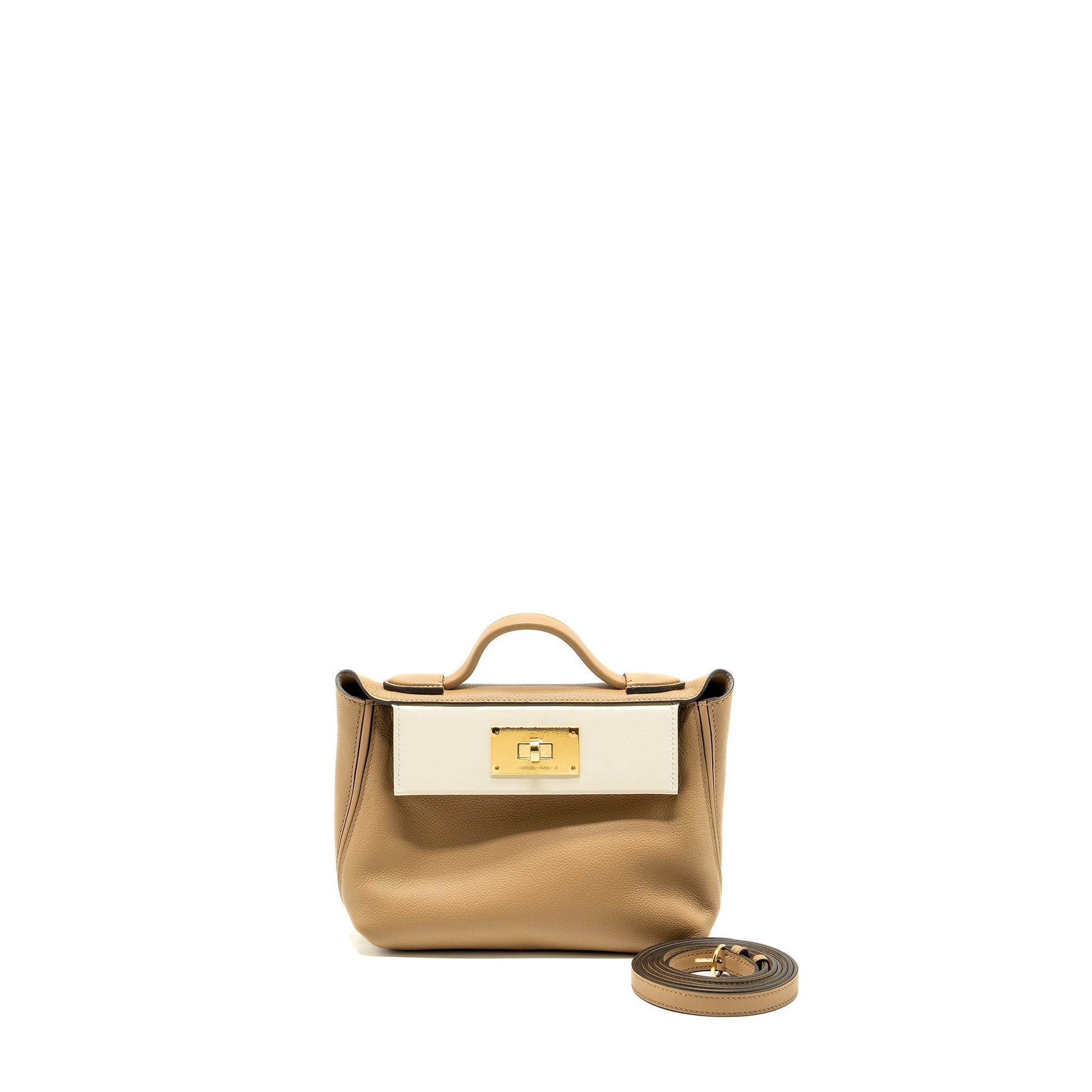 Hermes Mini 24/24 2424-21 Bag Evercolor/Swift Chai/Nata/Cuivre GHW Stamp U