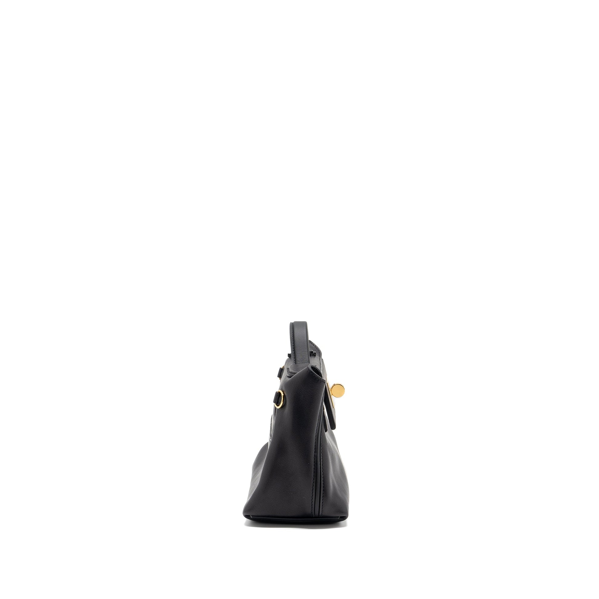 Details: Condition: 10/10 Unused ( This item is in unused and New condition. ) Colour: Black Hardware Colour: Gold Tone Measurement: Length: 21 cm Height: 16 cm Depth: 12 cm Material : Volupto Leather Stamp: U Origin :