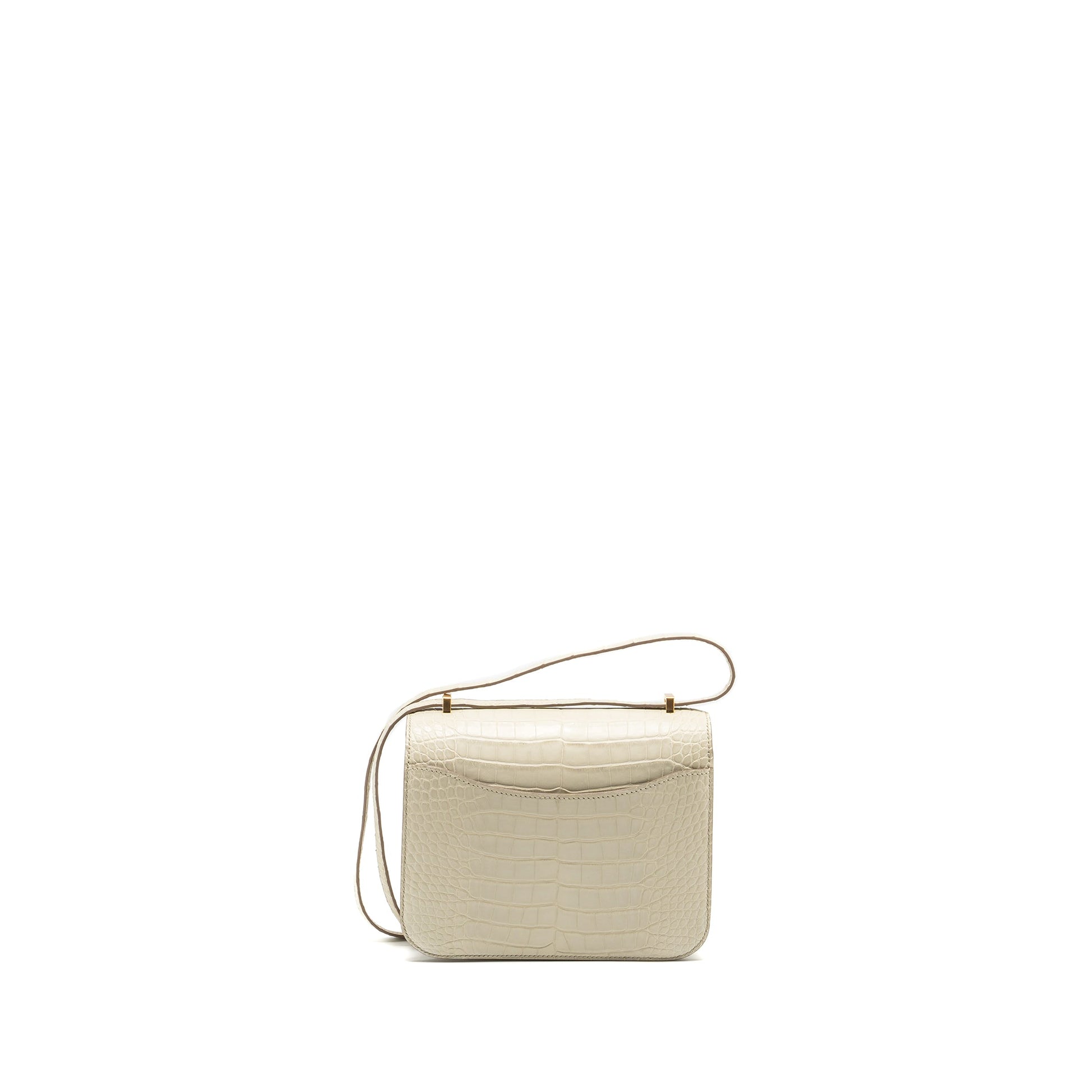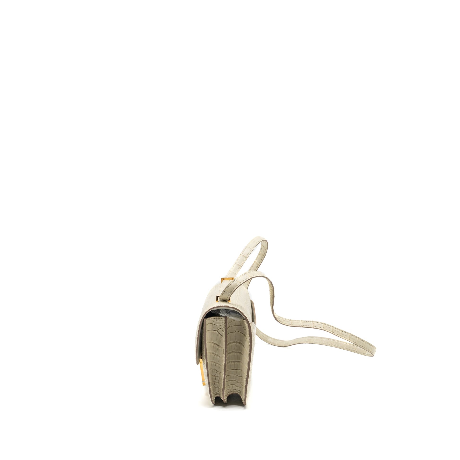Details: Condition: 10/10 Unused ( This item is in unused and New condition. ) Colour: Beton Hardware: Gold Tone Measurement: Length: 18.5 cm Height: 14.5 cm Depth: 4 cm Strap: 50.5 cm Material : Alligator Mississippiensis Mat Leather Stamp: Z (2021) Origin : France Inclusion: Full Set with Cites and Copy of Receipt