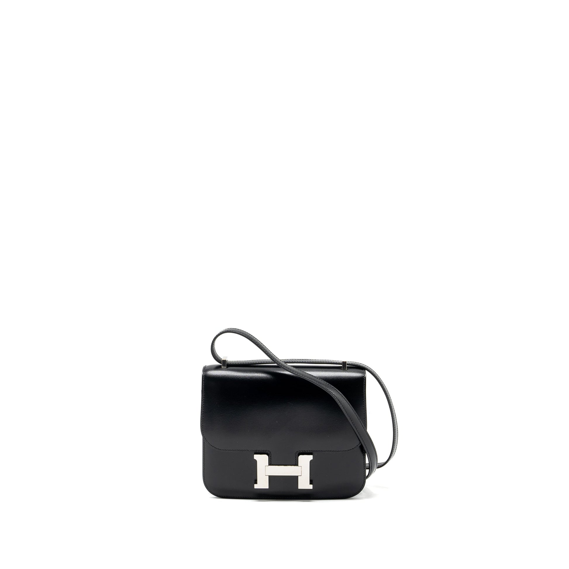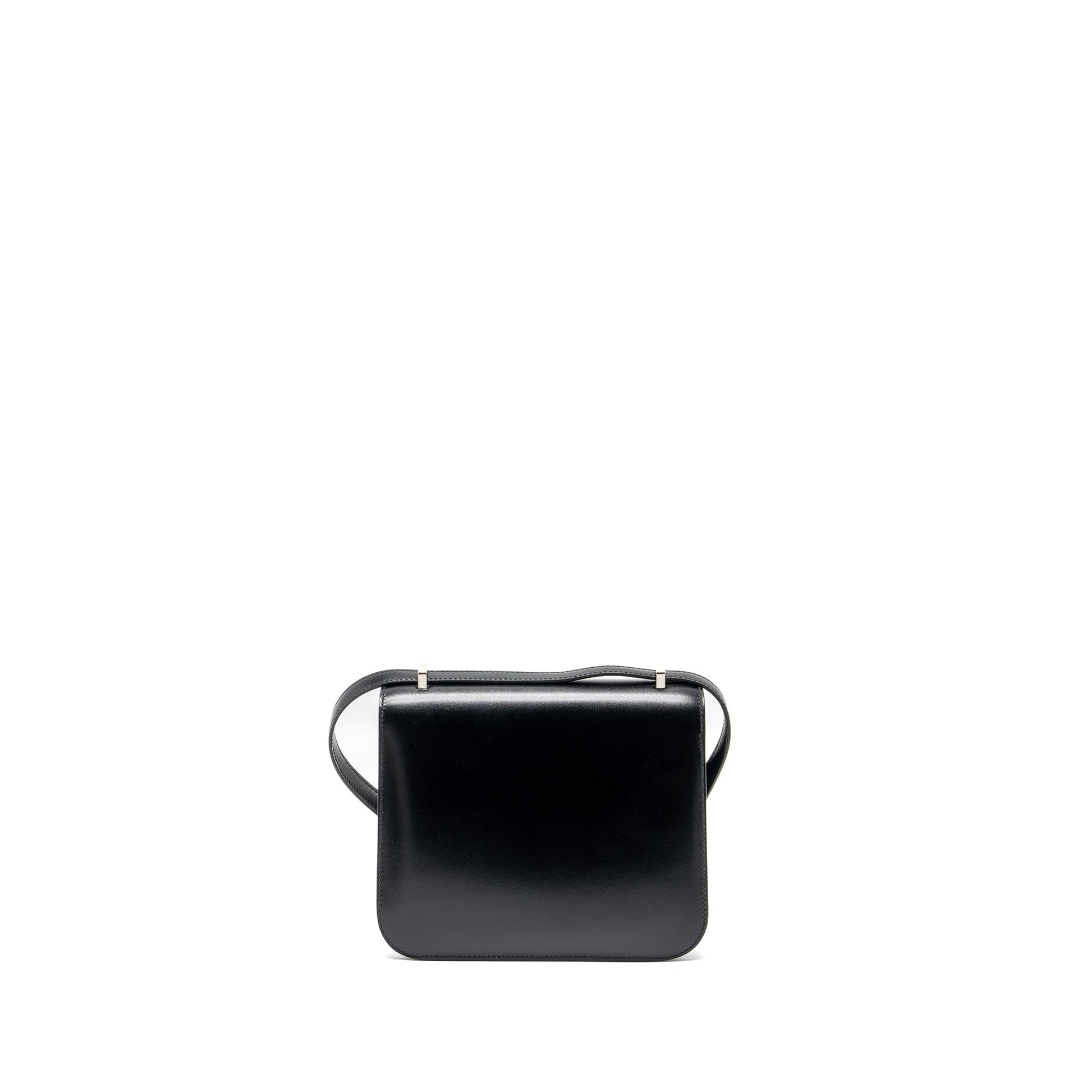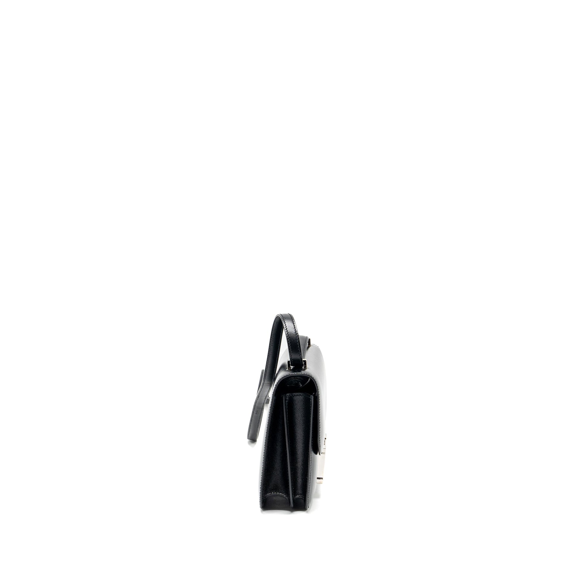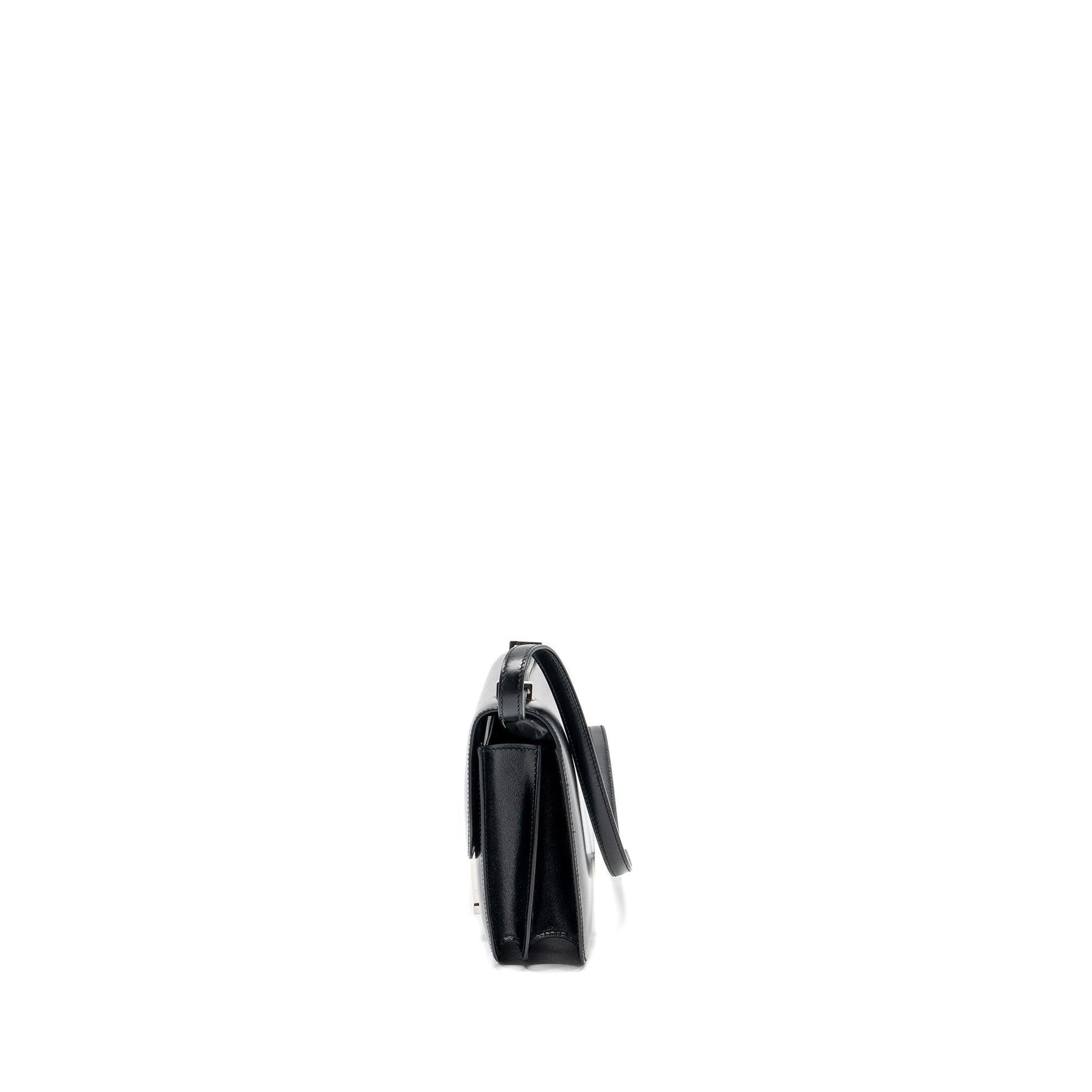 Details: Condition : 9.9/10 New ( This item is in excellent conditionwith two very light scratches on leather.) No protective sticker on buckle hardware Colour: Black Hardware: Silver Tone Measurement: Length: 18.5 cm Height: 14.5 cm Depth: 4 cm Strap: 50.5 cm Material : Box Calfskin Leather Stamp: Y (2020) Origin :