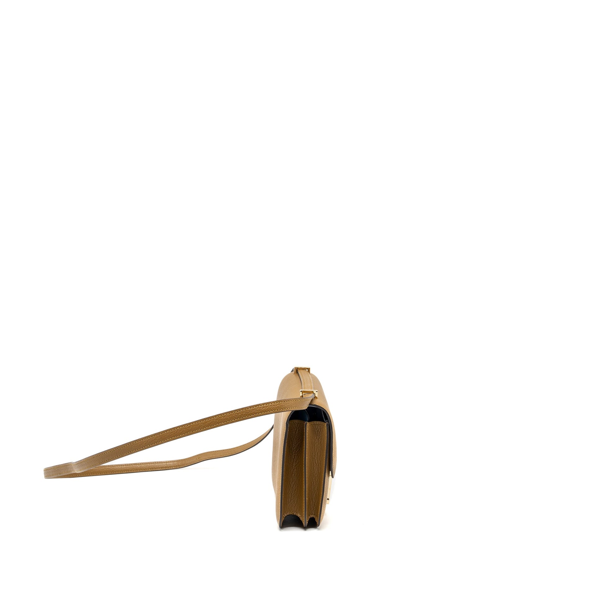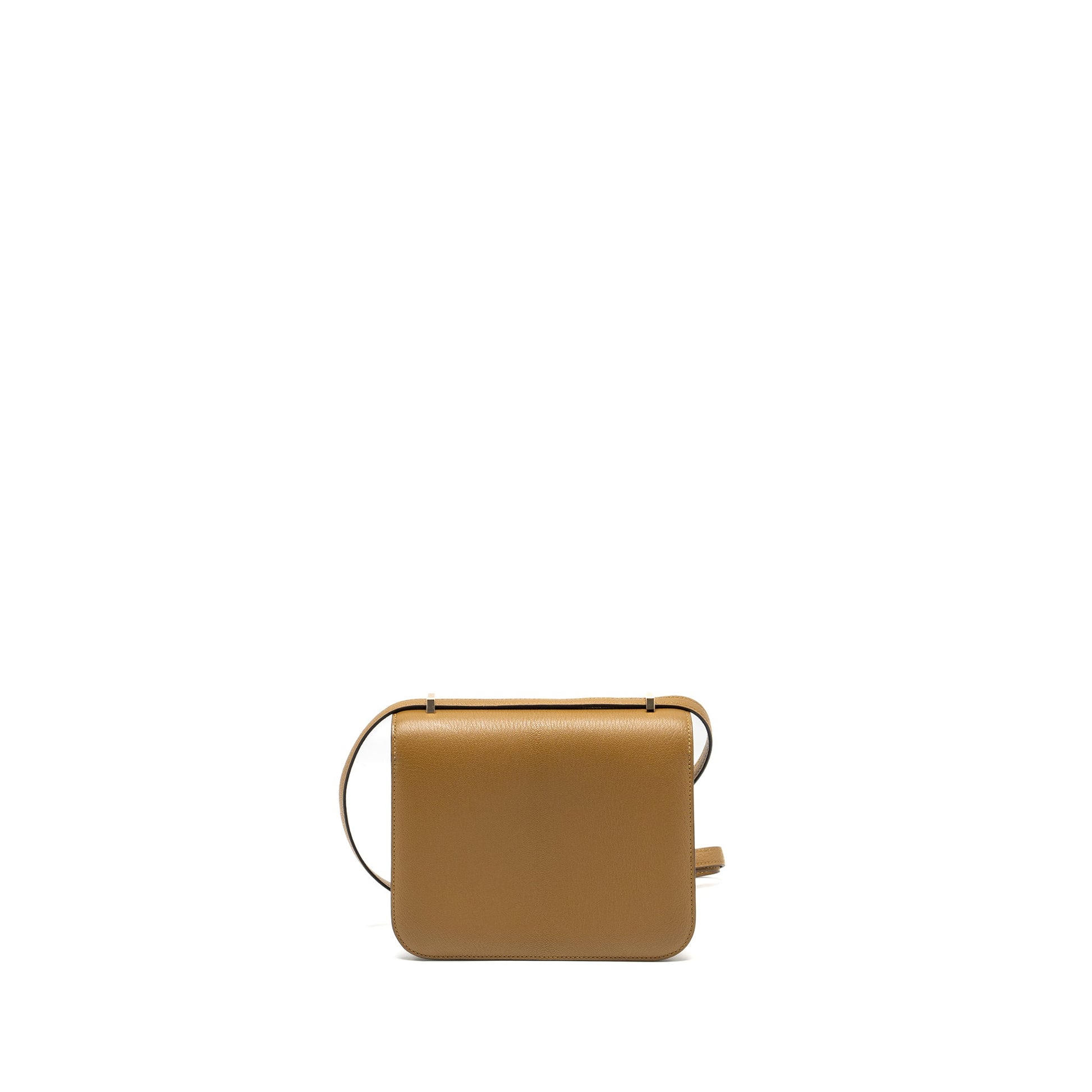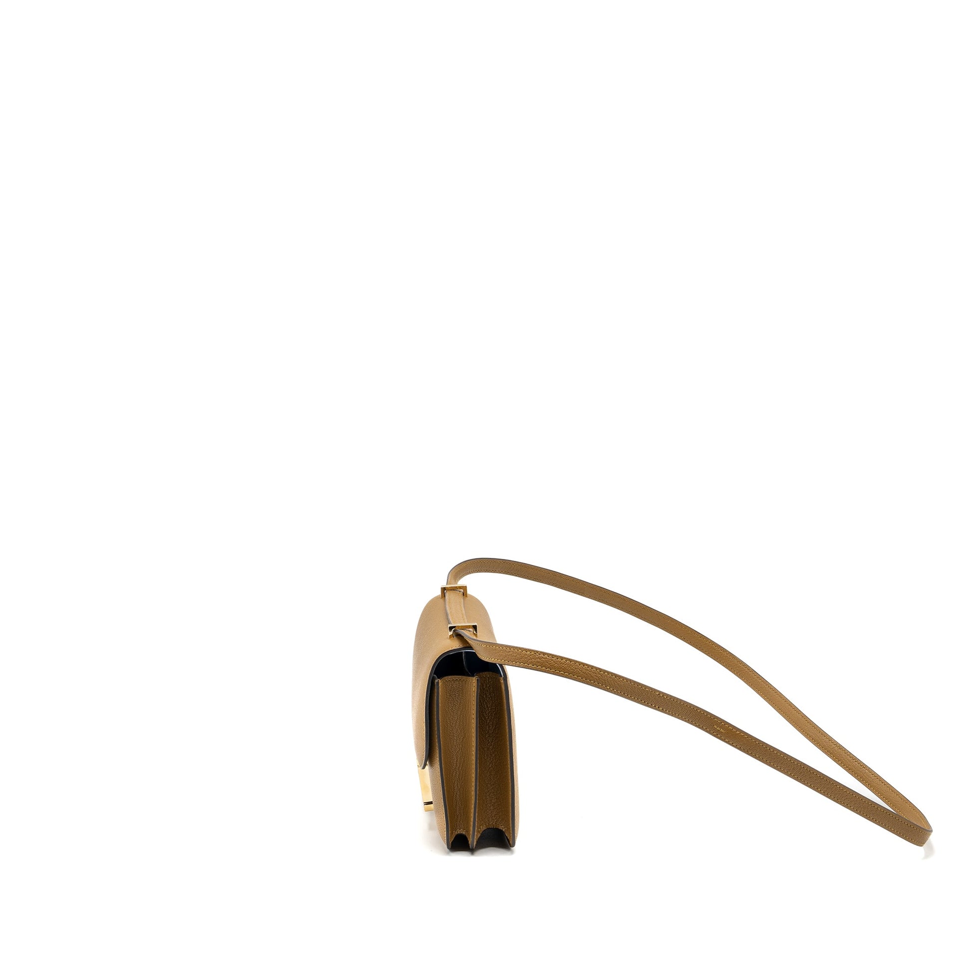 Hermes Mini Constance Chèvre Mysore Kraft/Bleu Brume RGHW Stamp W (new version)