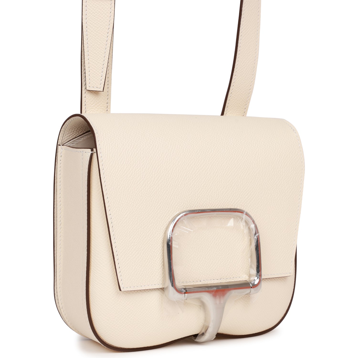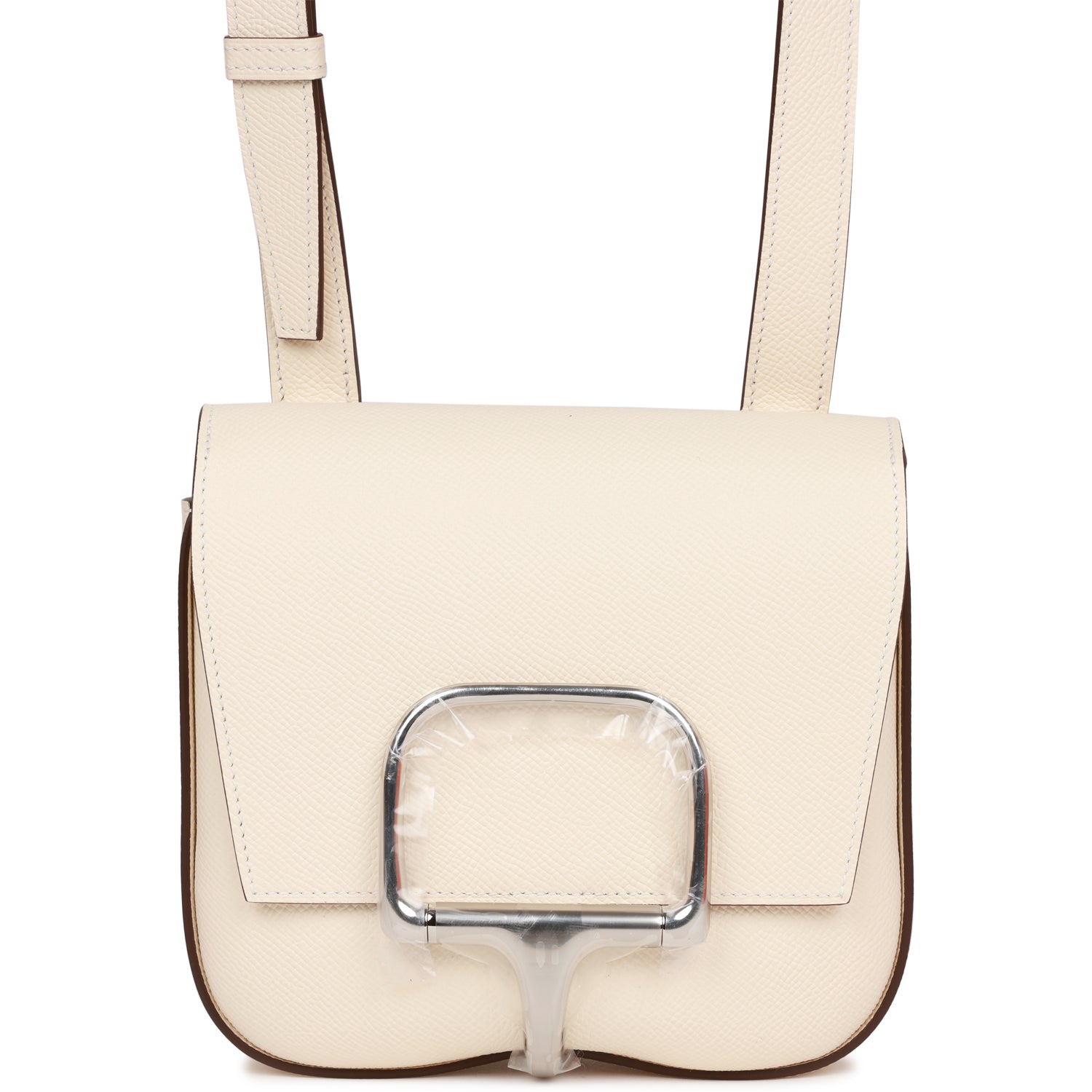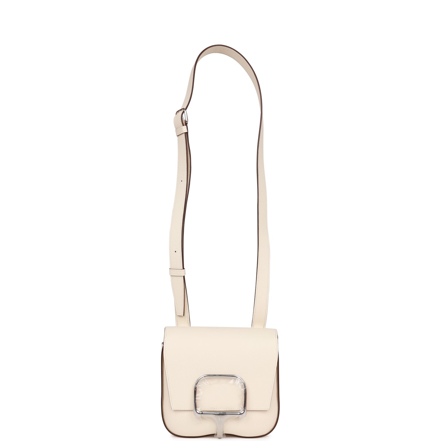 Details: This Mini Della Cavallera is of nata epsom with palladium hardware and features tonal stitching, front flap and adjustable shoulder strap . The interior is lined with nata swift leather with no interior pockets. Collection: U Origin: France Condition: Pristine; new or never New (plastic on hardware) Accompanied by: Hermes box, Hermes dustbag, shoulder strap, shoulder strap dustbag and felt Measurements: 7 ' width x 6.5' height x 2.25' depth; strap 18' drop