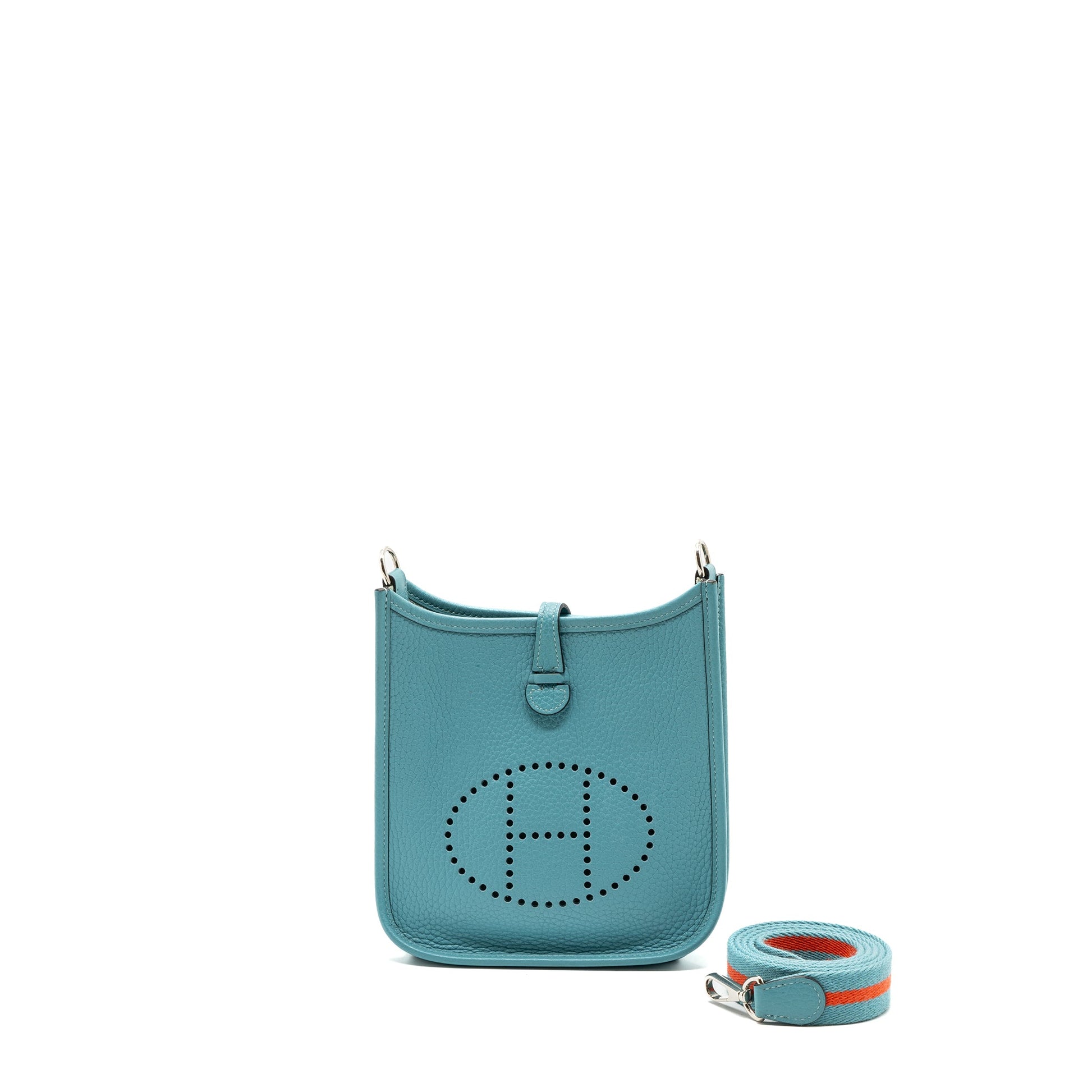 Hermes mini evelyne clemence blue saint cyr with multicolor strap SHW stamp T