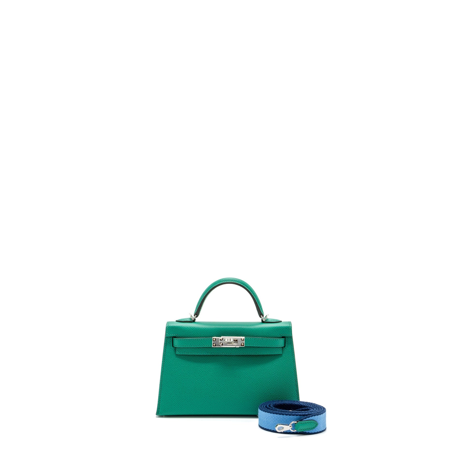 Hermes Mini Kelly Epsom Wooly Strap Vert Jade/ Blue Paradis-Saphir SHW Stamp U