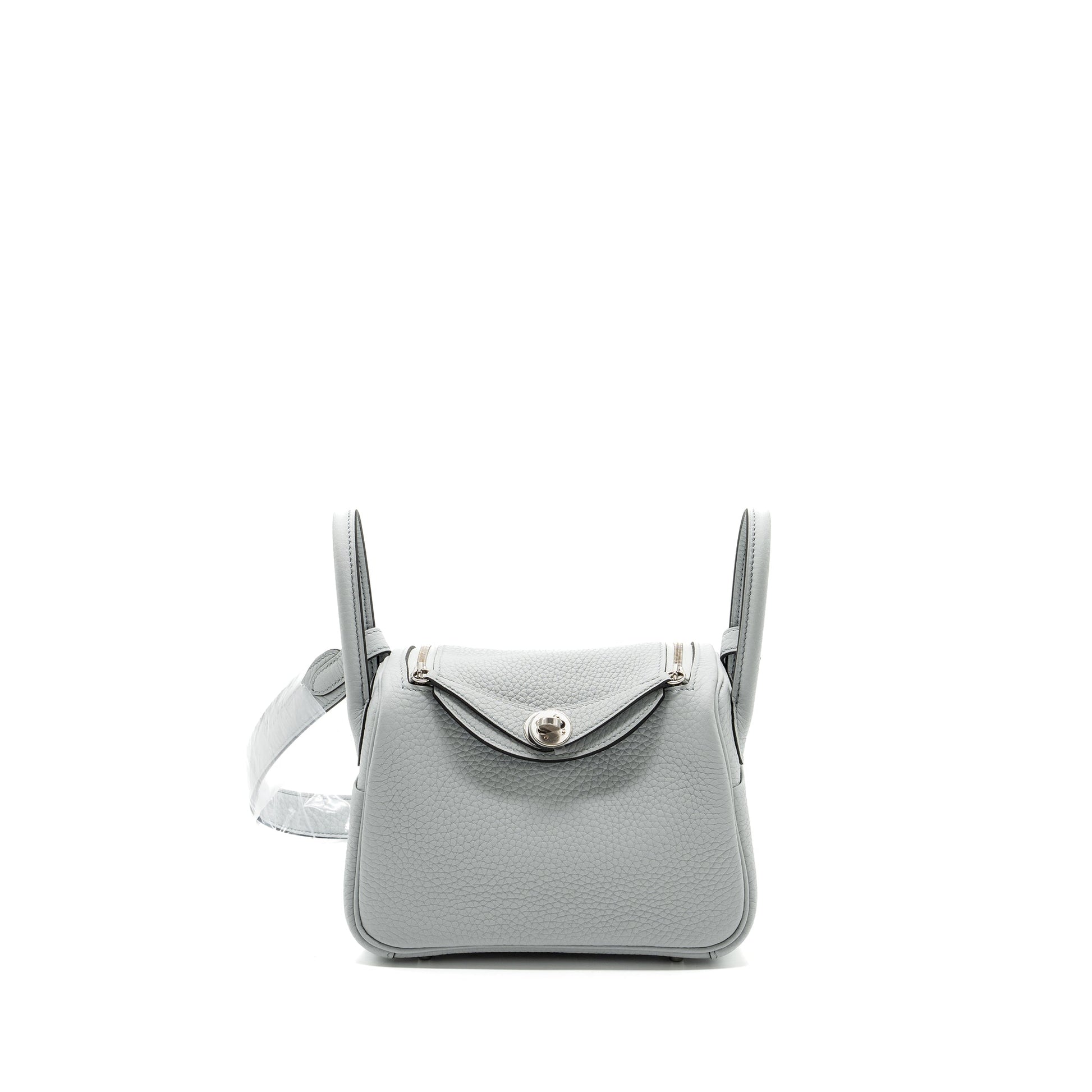 Hermes Mini Lindy Clemence Blue Pale SHW Stamp B