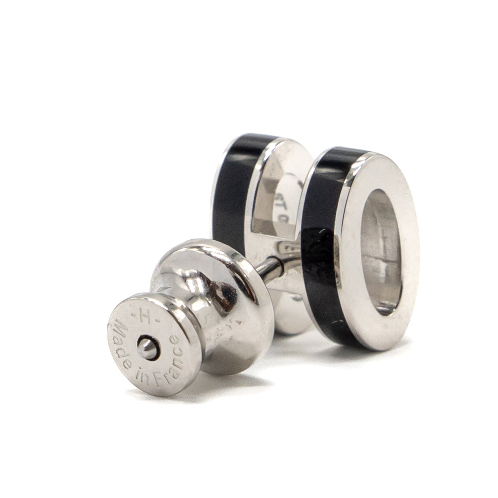Details: Condition: 10/10 Unused ( This item is in unused and New condition. ) Colour: Black Measurement: Height: 0.9 cm Width: 0.7 cm (We do not offer exchange or refund if the size does not fit. Please contactsupportbefore the purchase for assistance ) Material: Metal with silver hardware / Enamel Inclusion: Box Origin: France