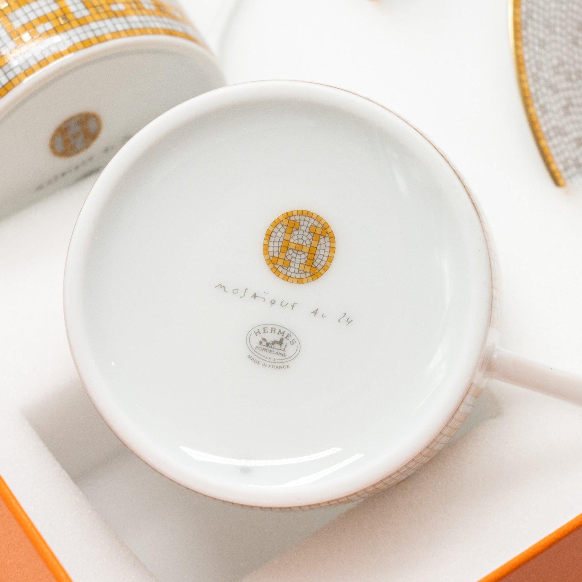 Hermes Mosaique au 24 gold tea cup and saucer (2 sets)