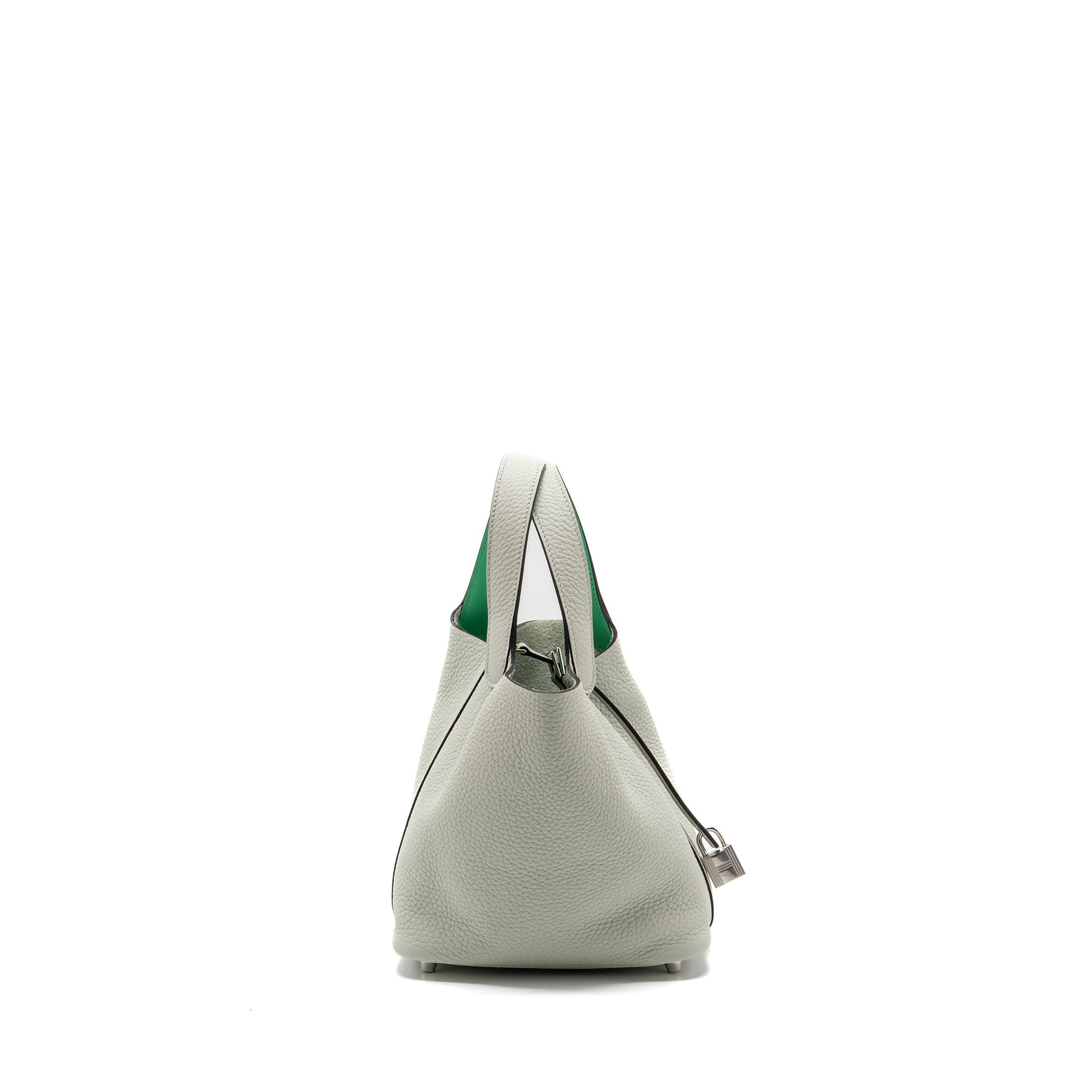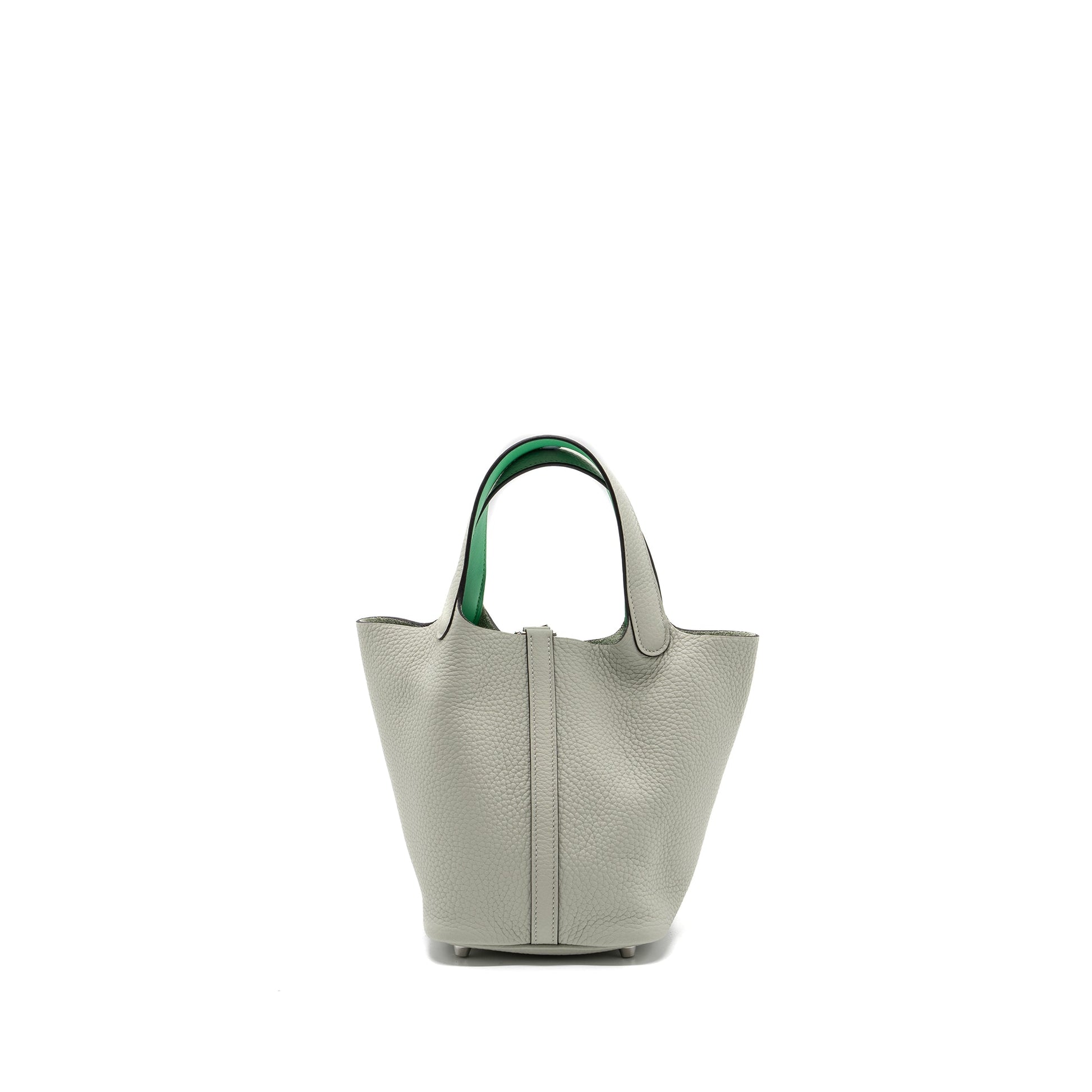 Hermes picotin 18 lock bag clemence / swift gris neve/ vert comics SHW stamp B