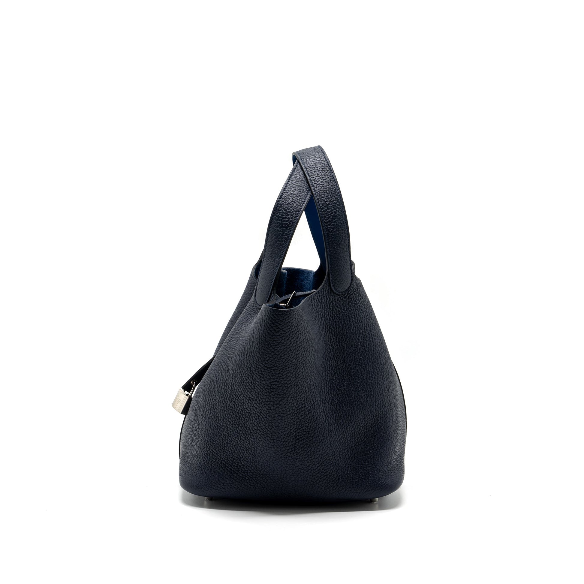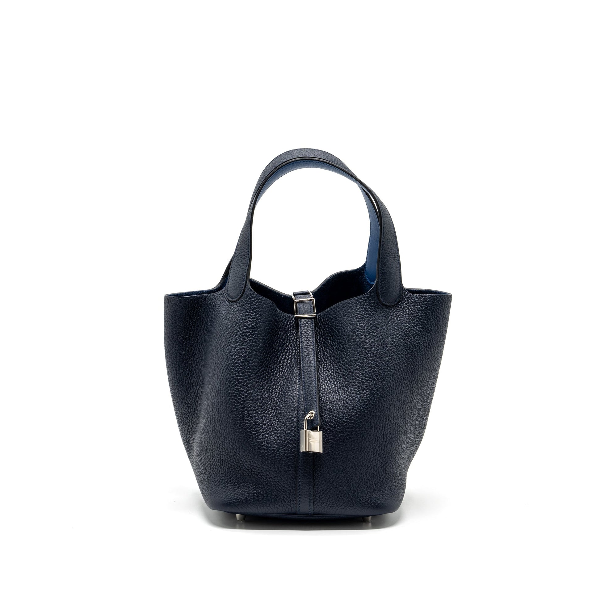 Hermes picotin 22 lock bag clemence/ swift blue nuit / blue France SHW stamp Z