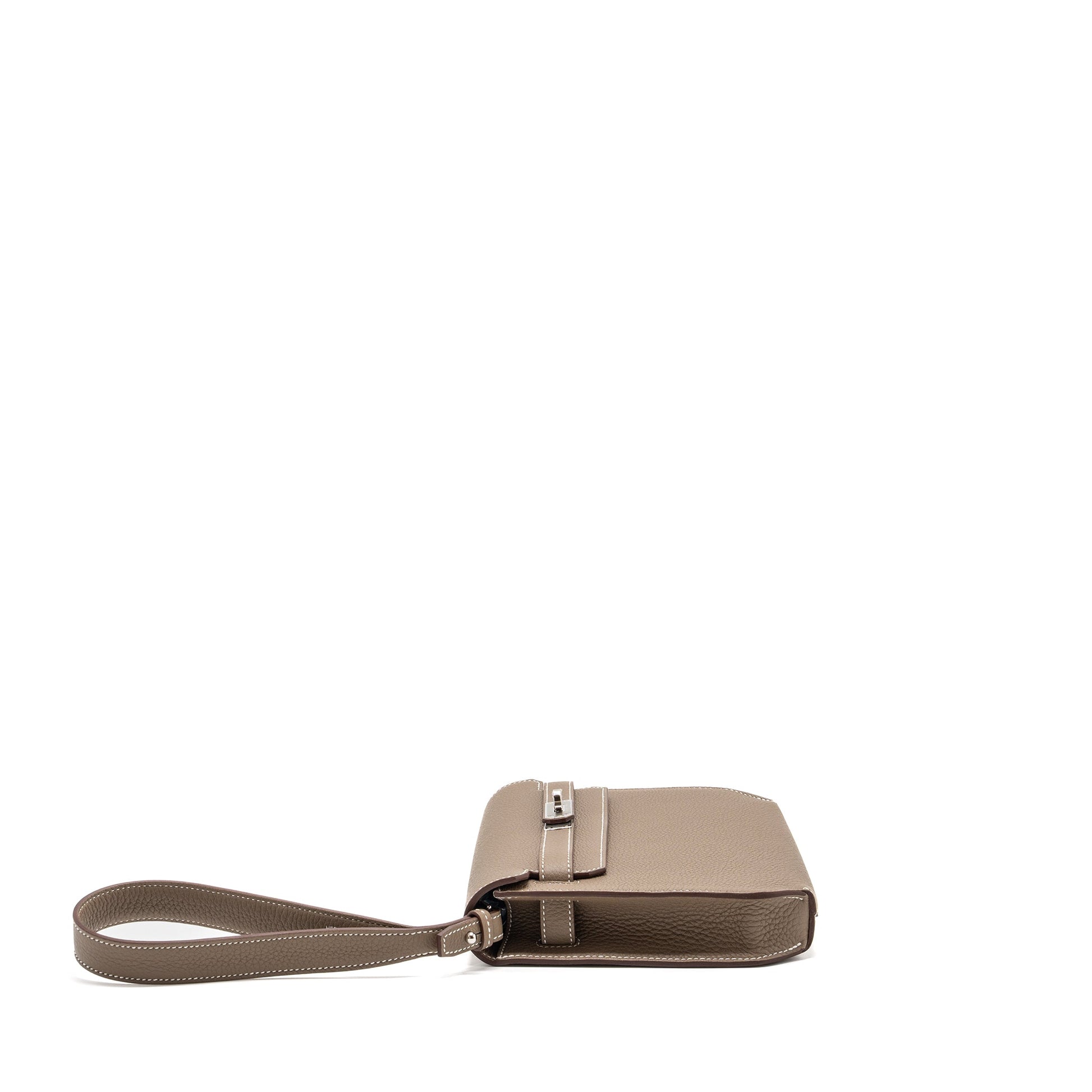 Details: Condition: 10/10 Unused ( This item is in unused and New condition. ) Colour: Etoupe Hardware Colour: Silver Tone Measurement: Length: 25 cm Height: 17 cm Depth: 4 cm Material : Togo Leather Stamp: B Origin :