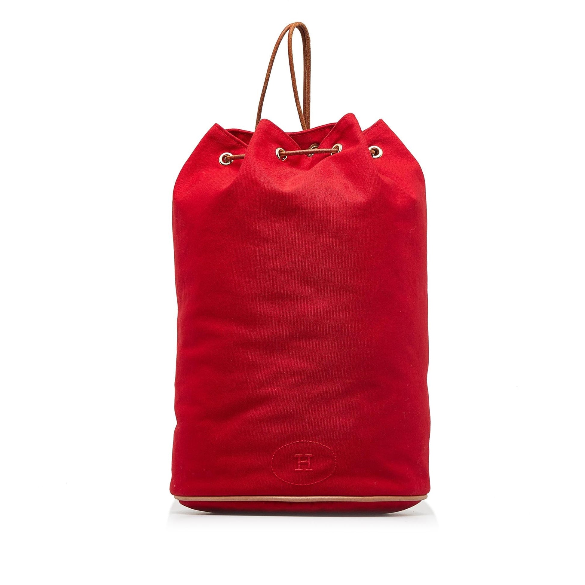 Details: Nothing conveys luxury quite like the high French Fashion HoNew of Hermes. Founded in 1837 as a harness maker, the equestrian-style brand's rich heritage carries on through its traditional 'horse & carriage' logo. The brand’s chief executive designer is Vanhee-Cybulski (2014). Holding the highest of craftsmanship with an assortment of luxurious leathers, each piece from this coveted designer is an exquisite addition to any collection. Condition Notes: Exterior Bottom stained with Other. Exterior Handle New. Interior Lining stained with Other. Width (at base): 9.5' Height: 14.75' Depth: 9.25' Shoulder Strap Drop: 25.75' Type of Material: Canvas Color: Red Origin: France