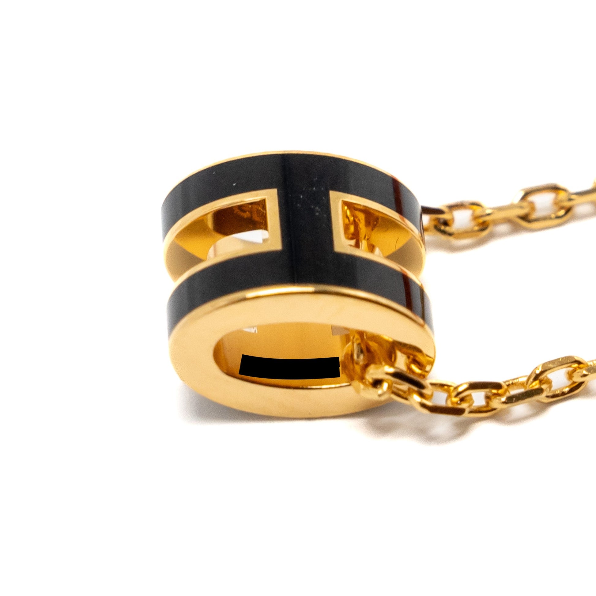 Details: Condition : 9.9/10 New ( This item is in excellent conditionwith m inor scratches on hardware. ) Colour: Black/ Gold Tone Measurement: Height: 0.9 cm Width: 0.7 cm Necklace Length:37 cm (We do not offer exchange or refund if the size does not fit. Please contactsupportbefore the purchase for assistance ) Material: Pendant in metal with Gold plated hardware & Enamel Origin: France Inclusion: Box