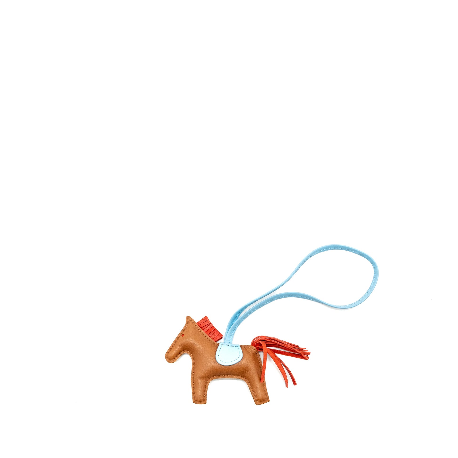 Hermes rodeo Pegase pm bag charm brown/light blue/pink stamp A